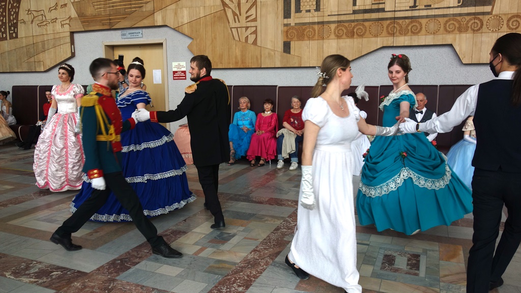В 17.00 часов в фойе Большого зала начался долгожданный «Весенний бал». Нарядные дамы и кавалеры кланялись в реверансах, с легкостью двигались под звуки Вальса Цветов, Кадрили и Ирландкой польки. Гости с радостью танцевали, общались, разучивали новые «Па». Бал был превосходен!