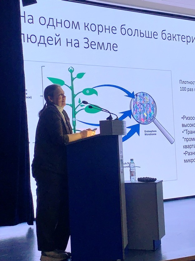Лекция называлась «Как бактерии влияют на жизнь растений» и вызвала большой интерес у присутствовавших в зале школьников.