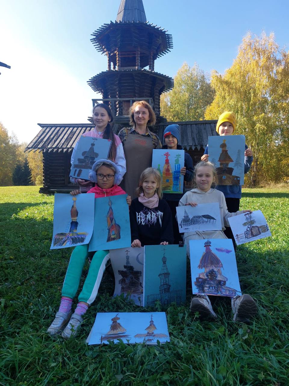 Особенно радует, что такой творческий формат, очень демократичный, живой, привлекает и учащихся ДХШ. Так, например, в этот раз большую группу учеников вывезла на пленэр в Музей под открытым небом О.В.Чернышева (Кольцово). Затем ребята привезли свои работы в Дом ученых, показали нам, поговорили о результатах, своих впечатлениях и посмотрели выставку пленэрных работ взрослых.