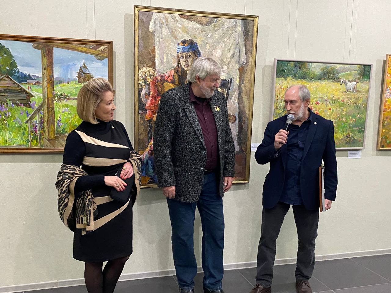 Тема православия, семейных и духовных ценностей, любви к Родине тоже в числе наиболее частых. Это и пейзажи Г.Удобкина, и картина В.Распутина, и большое полотно А.Бабичева.