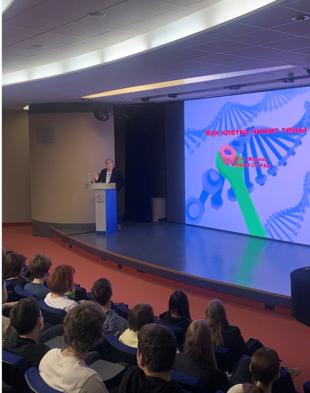 17 сентября в Малом зале Дома ученых состоялась лекция "Как клетка чинит гены?" заведующего лабораторией геномной и белковой инженерии ИХБФМ СО РАН, заведующего кафедрой молекулярной биологии и биохимии НГУ, доктора биологических наук, академика РАН Дмитрия Олеговича Жаркова.