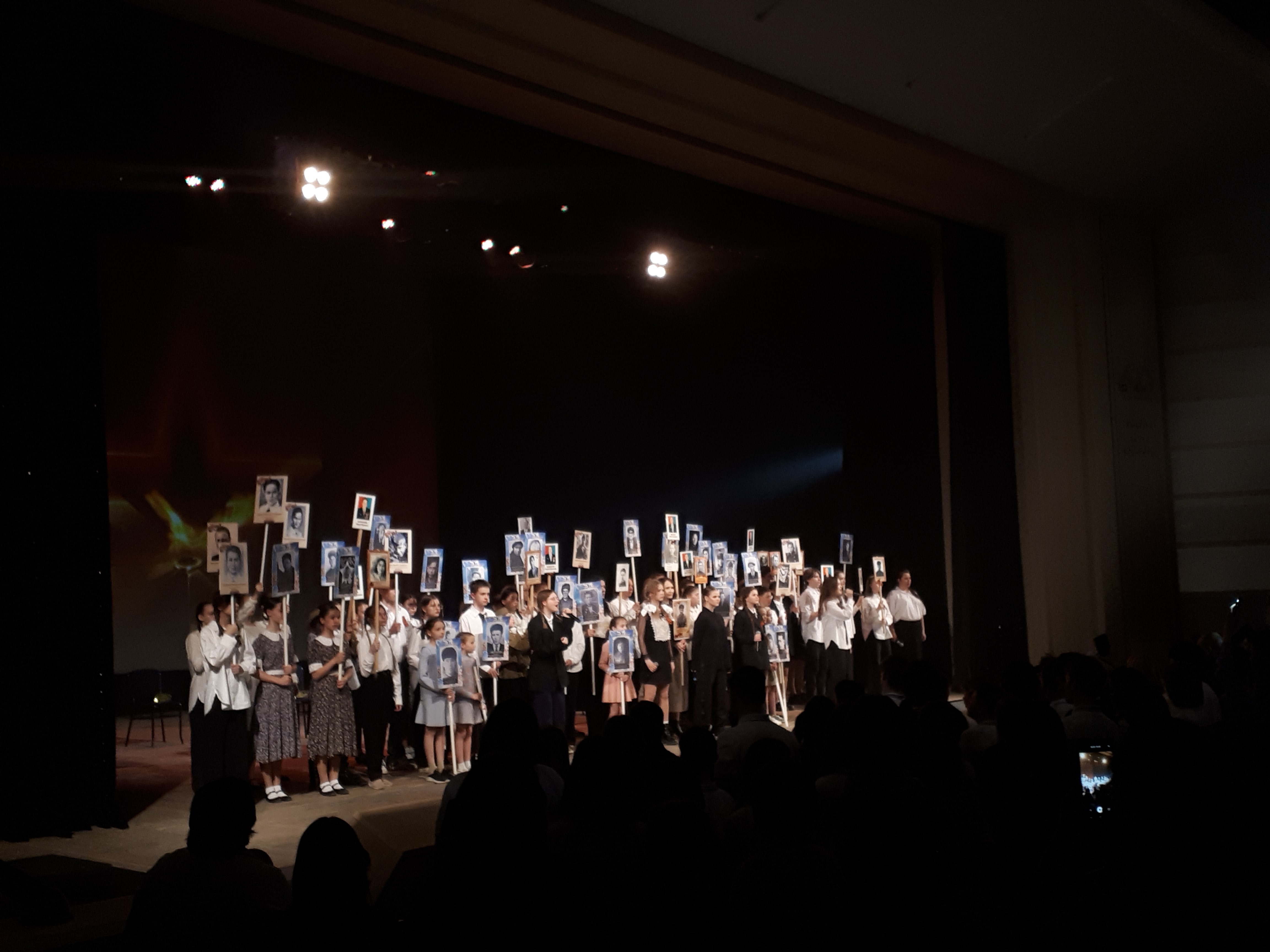 Спектакль «Дети войны» – это дань памяти всем героям нашего Отечества. Имена детей-героев – Зои Космодемьянской, Вали Котика, Лени Голикова, Марата Казея и многих, многих других – это имена нашей Победы. Это истории беспримерного мужества и страшной боли тех, кто не дожили даже до совершеннолетия, но стали навеки бессмертными своим подвигом во имя Родины. Им была посвящена и фотовыставка, развернутая в фойе Большого зала и сопровождаемая рассказом юных волонтеров.