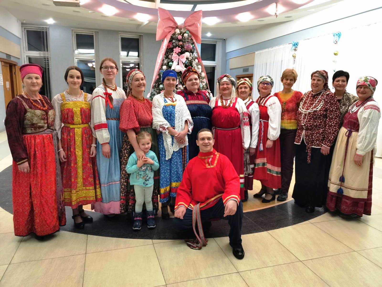 По завершении концерта в Зимнем саду началась Праздничная вечерка в фойе Малого зала, которую провели участники клуба народной песни под руководством Натальи Оболенской.