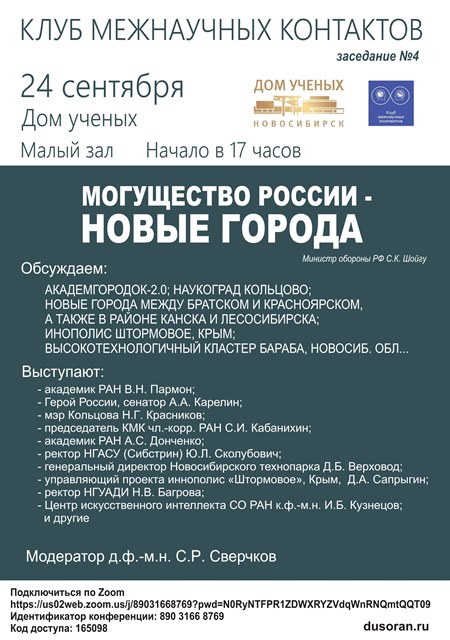 Сколько новых городов построено в мире за последние десятилетия? Сколько в России? Каково влияние новых городов на экономику и развитие новых технологий? Что и где будем строить? Это лишь часть вопросов для дискуссии на ближайшем заседании Клуба межнаучных контактов СО РАН.