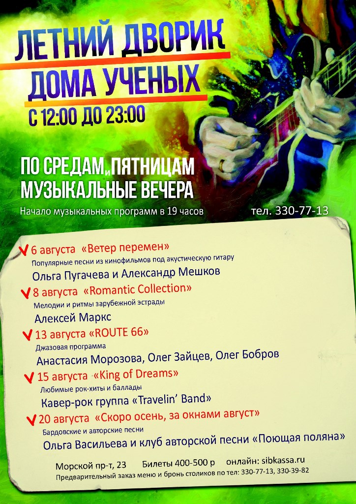 Предварительная продажа билетов: 400 руб. В день концерта 500 руб. Билеты онлайн: sibkassa.ru