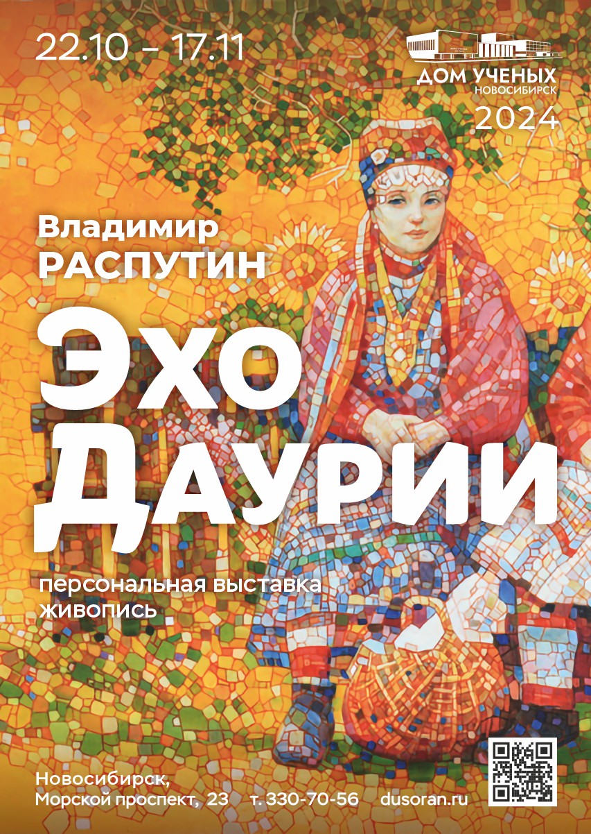 Сибирский художник Владимир Распутин представляет в выставочных залах Дома ученых свою новую выставку "Эхо Даурии". Это живописный цикл работ, созданных по впечатлениям о коренных жителях Забайкалья, которое раньше носило гордое имя - Даурия. В этот исторический регион входит и современная Бурятия, и Амурский край, и части Китая и Монголии. Но художника Владимира Распутина привлекли образы не этнических народов края, а переселенцев из Российских регионов, которые ещё в XVIII веке целыми семьями были переселены по приказу правительства Российской империи при разделе Речи Посполитой. Местные жители так и назвали переселенцев - староверов "семейские".