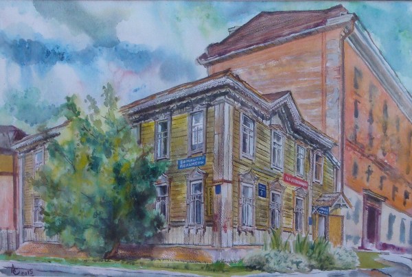 Когда-то в детстве я каждое лето жила у бабушки в частном доме в центре города Бийска... Видимо, отсюда происходит моя горячая любовь к старинным бревенчатым домикам с голубыми ставенками и палисадниками, заросшими травой... Помню, ещё в школе, я любила “штамповать” сюжет “домик под деревом” в неимоверных количествах, просто так, для отдыха и развлечения. Поэтому и сейчас они присутствуют в моих работах. Тем более время меняется, а эти домики остаются такими же уютными и теплыми.