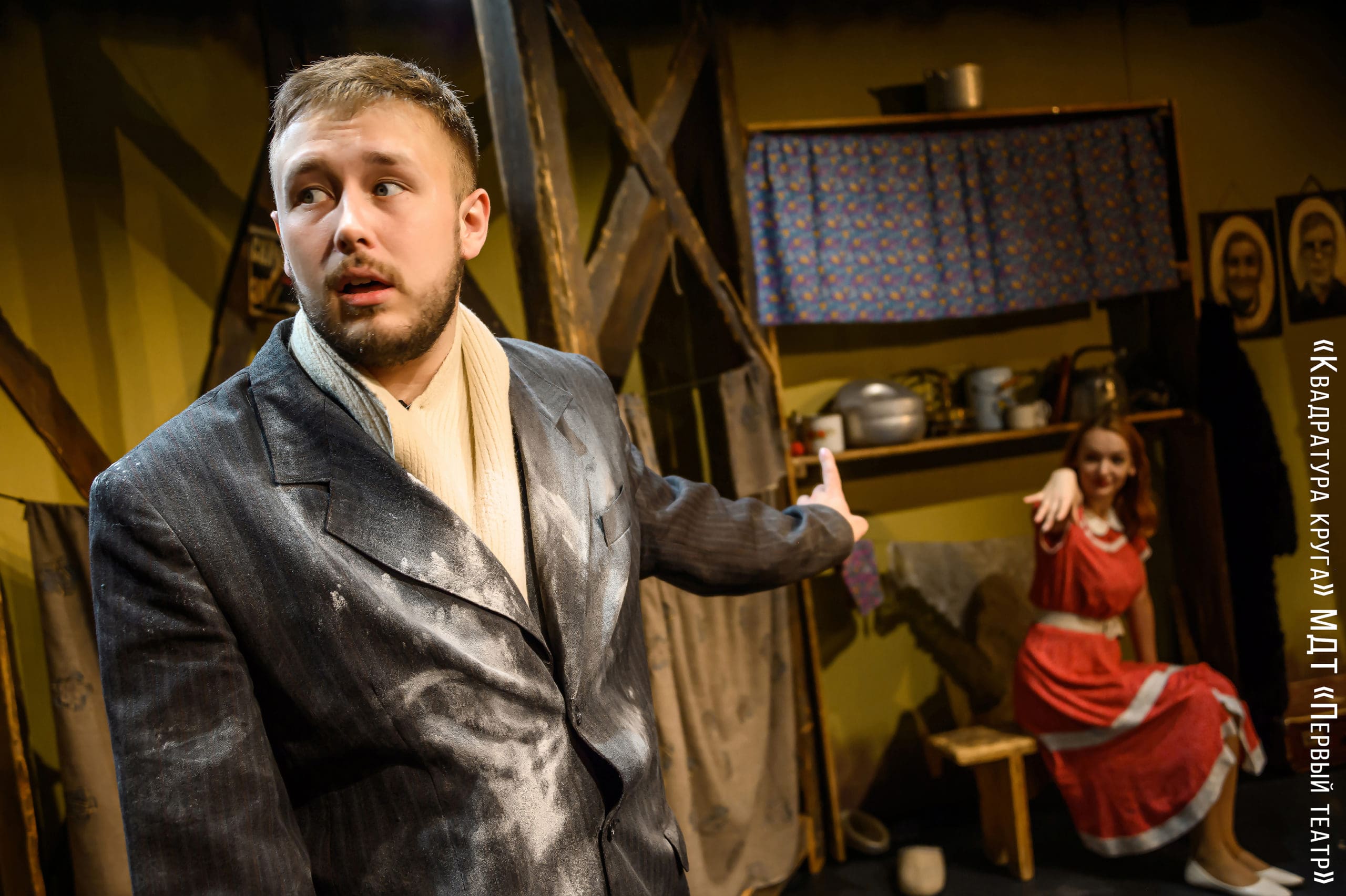 Актеры обживают пространство, превращая зрителей в любопытных соседей, наблюдающих за жизнью шумной молодежи через щели в картонной перегородке между комнатами. Так и получается: одни гости постоянно заходят в дверь и устраивают шумные построения с песнями, а другие – сидят в зале и, кажется, тоже могут в любой момент присоединиться.