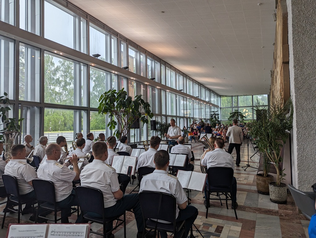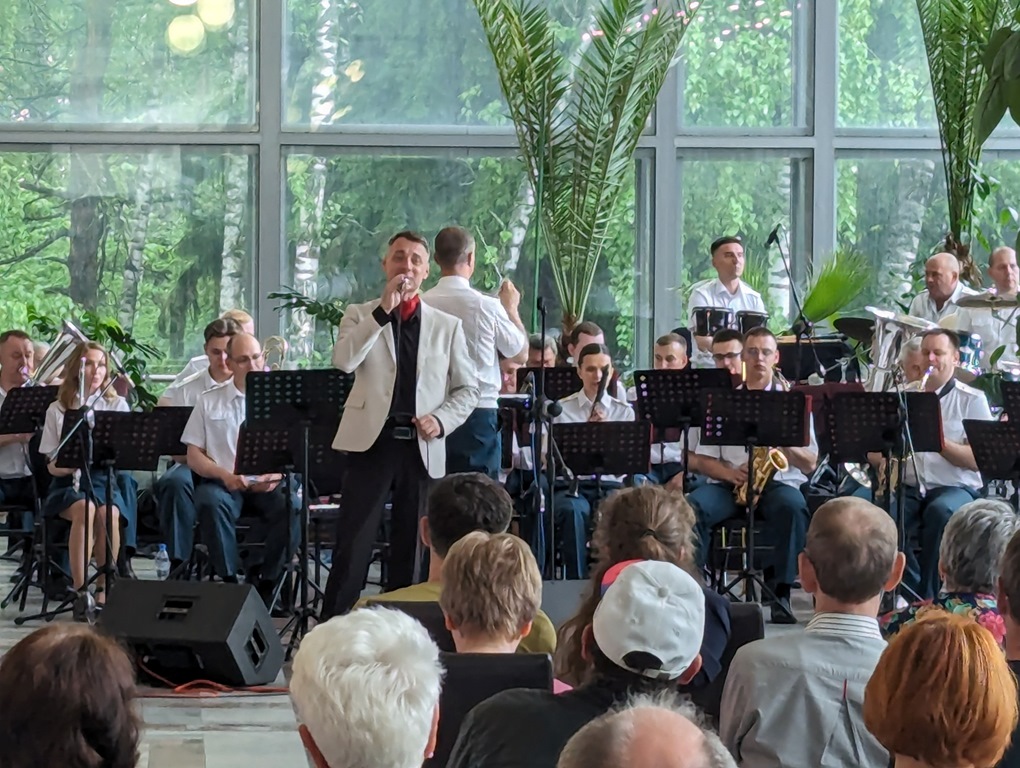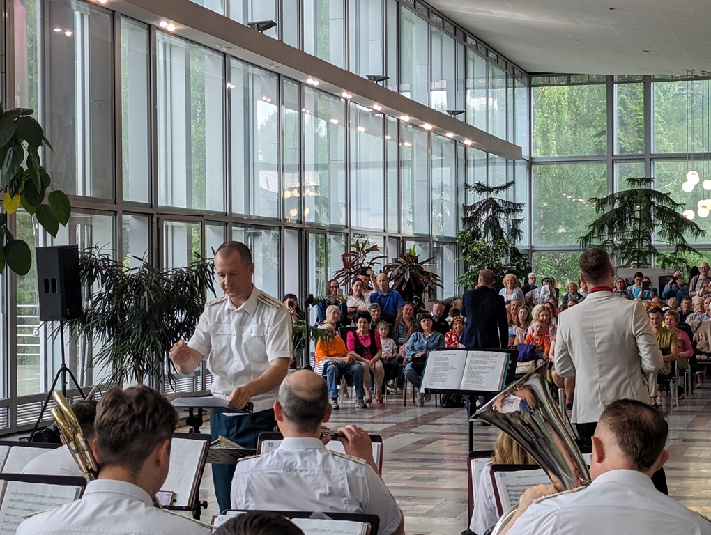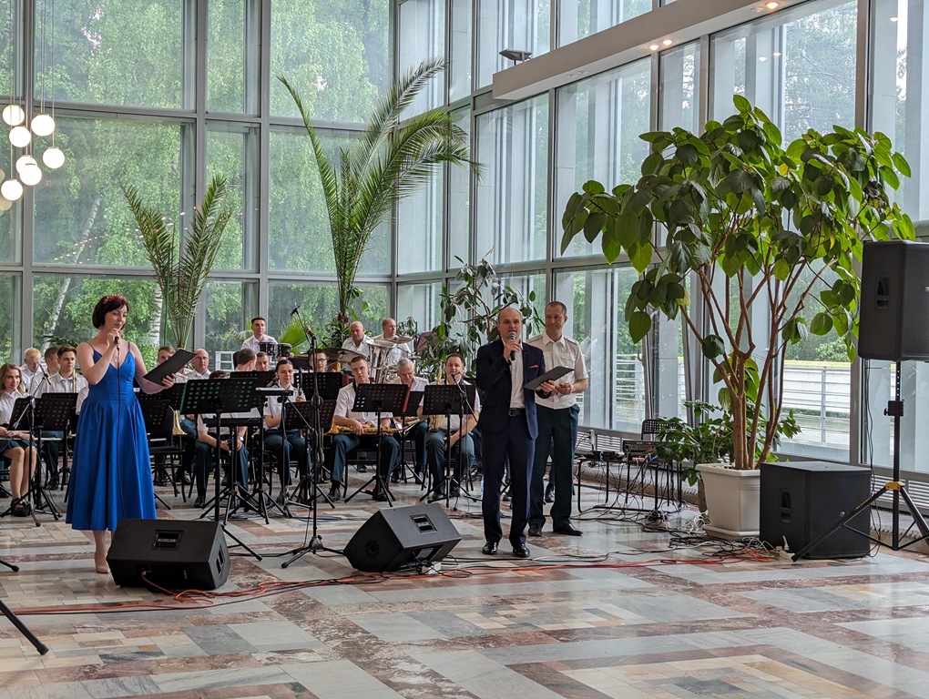 В День России, 12 июня, в Доме ученых прошел большой праздничный концерт. Перед нашими гостями выступил военный оркестр штаба Сибирского округа войск национальной гвардии РФ (художественный руководитель – подполковник Артур Гарифулин), лауреат и обладатель Гран-при смотров-конкурсов военных оркестров в России и за рубежом, участник музыкальных фестивалей, один из старейших военно-музыкальных коллективов Сибири, который обеспечивает штатные строевые и торжественные мероприятия Сибирского округа войск национальной гвардии Российской Федерации. В концерте прозвучали патриотические произведения и современные эстрадные композиции, русские народные песни, попурри.
