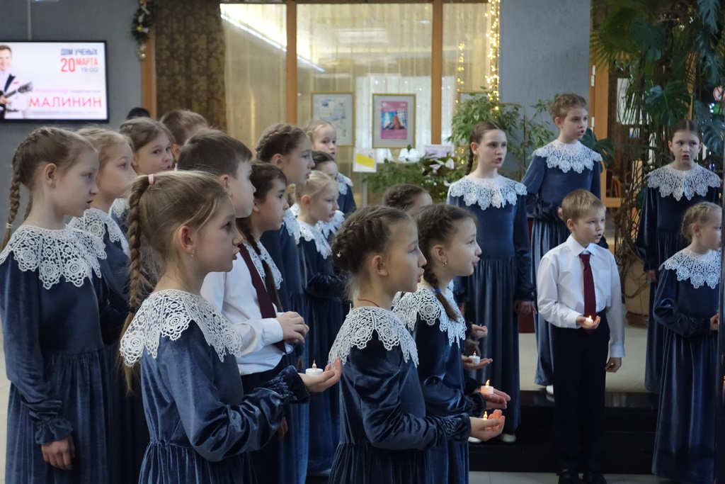15 января в Доме ученых выступил Образцовый коллектив детский хор «Радонеж» Музыкальной школы №10 из числа обучающихся Православной гимназии во имя преподобного Сергия Радонежского.Зимний сад заполнили зрители, среди которых родители и другие члены семьи юных артистов, а также педагоги и жители Академгородка.