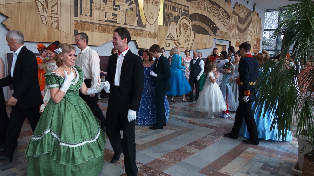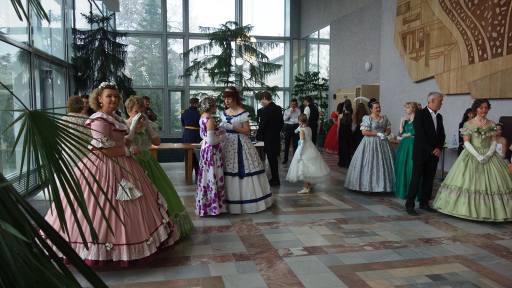 В 17.00 часов в фойе Большого зала начался долгожданный «Весенний бал». Нарядные дамы и кавалеры кланялись в реверансах, с легкостью двигались под звуки Вальса Цветов, Кадрили и Ирландкой польки. Гости с радостью танцевали, общались, разучивали новые «Па». Бал был превосходен!