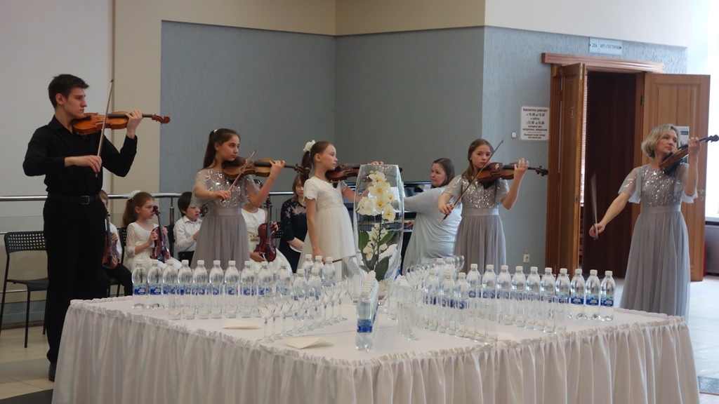 Мероприятие открыл концерт скрипичной музыки с участием ансамбля «Созвездие» и солистов (ДШИ № 10).