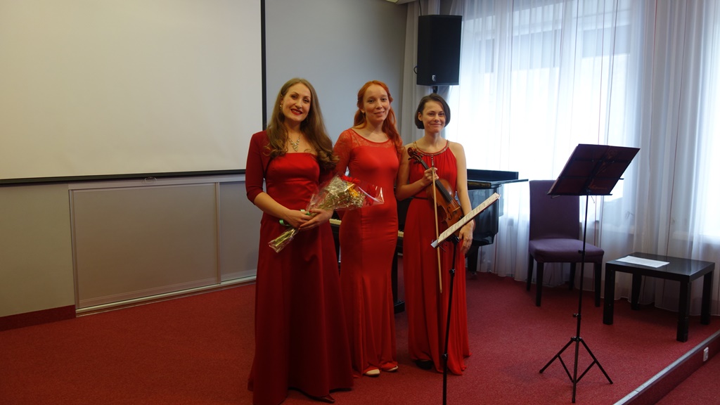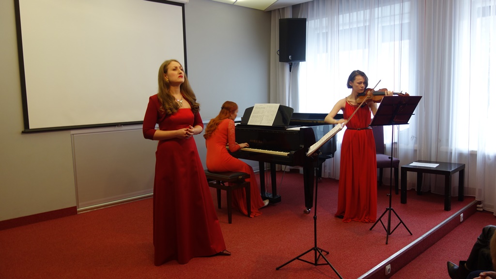 Очень деликатно и гармонично звучал аккомпанемент в исполнении Марины Зайцевой (рояль) и Людмилы Почтарь (скрипка).