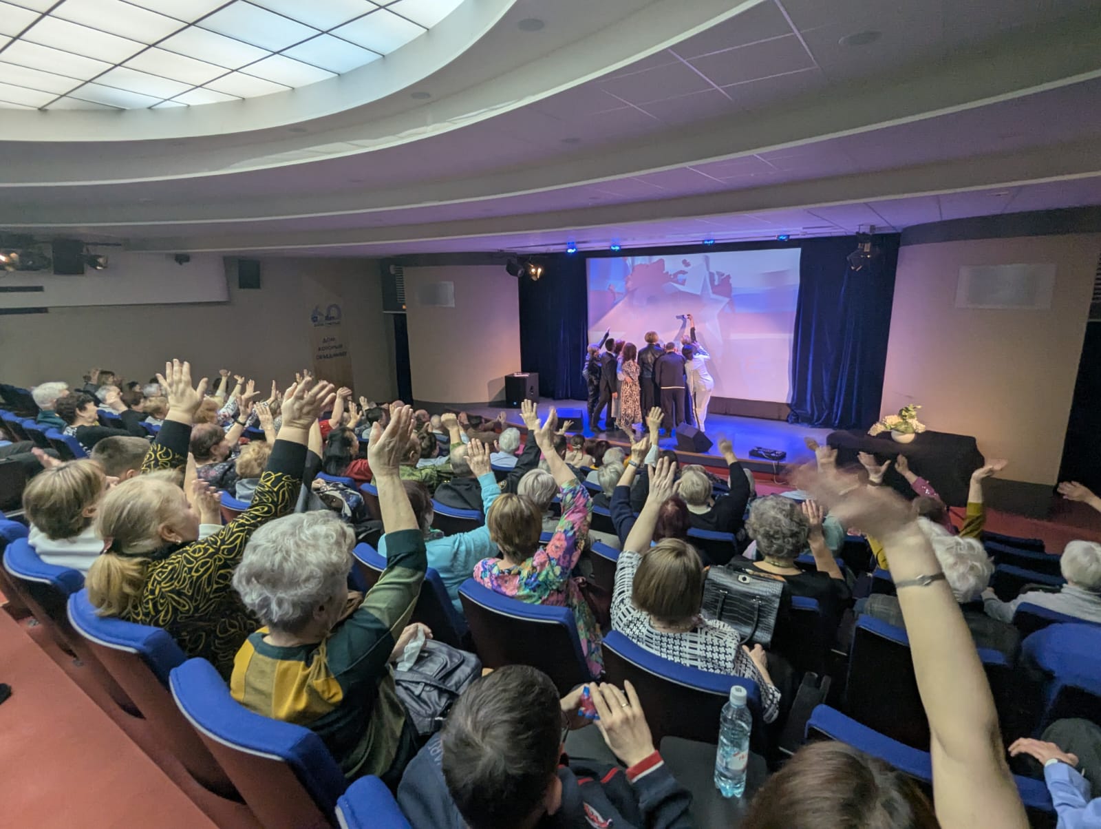 Среди приглашенных зрителей в зале - ветераны боевых действий, семьи участников СВО, а также жители Академгородка и члены Дома ученых.