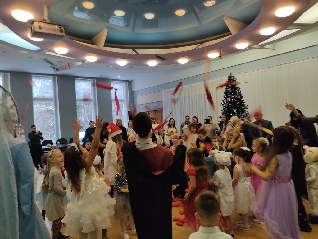 Для детей сотрудников Новосибирского высшего военного командного училища – постоянных партнеров и друзей Дома ученых – 26 декабря прошел новогодний утренник, наполнивший фойе Малого зала улыбками и смехом.