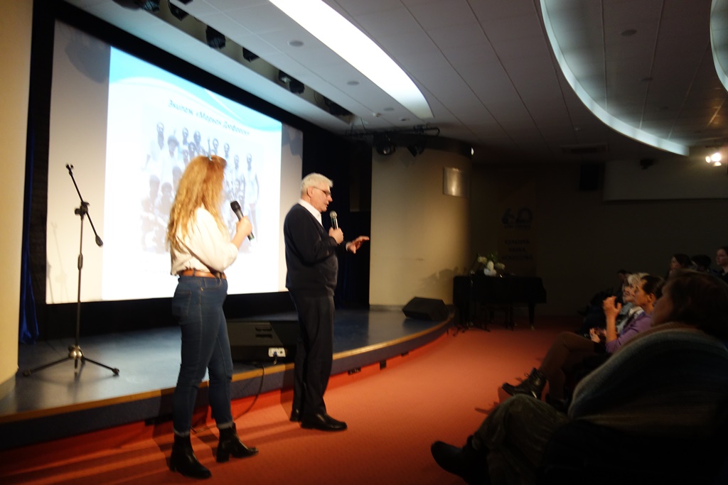 Далее следовал рассказ члена французского клуба Дома ученых Оливье Кура, в прошлом капитана дальнего плавания, о посещении франкоговорящих стран. С переводом на русский язык ему помогала Наталья Шевчук, сопредседатель французского клуба НДУ.