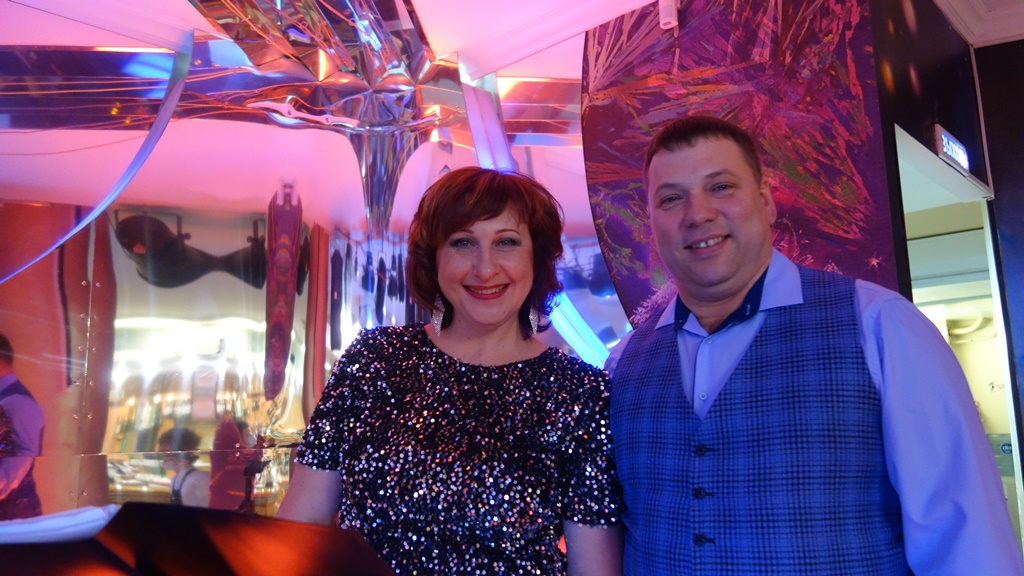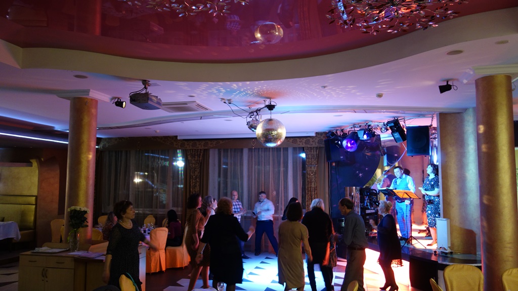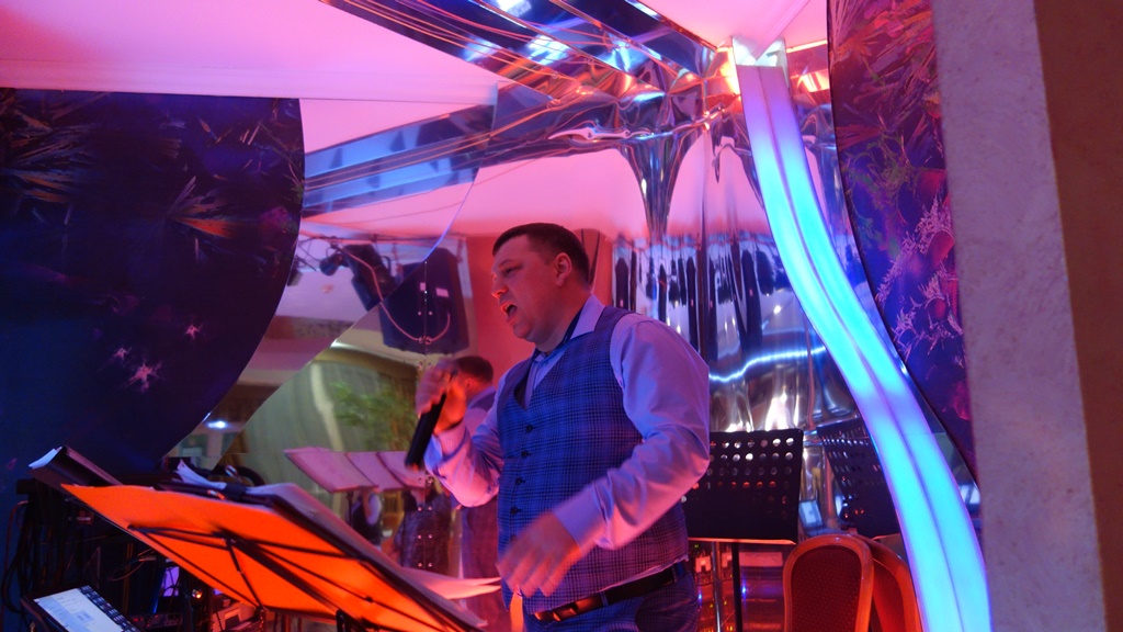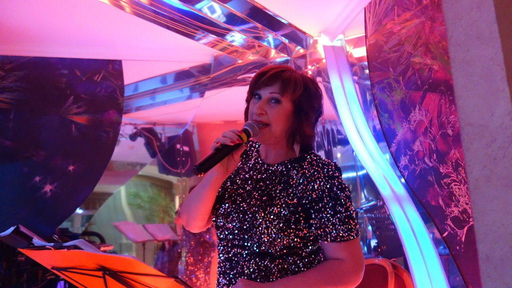 Ведущая и вокалистка – обаятельная и привлекательная Оксана Пинчук провела несколько конкурсов среди гостей. Счастливчики получили пригласительные билеты на концерт 8 марта в Большой зал Дома ученых.