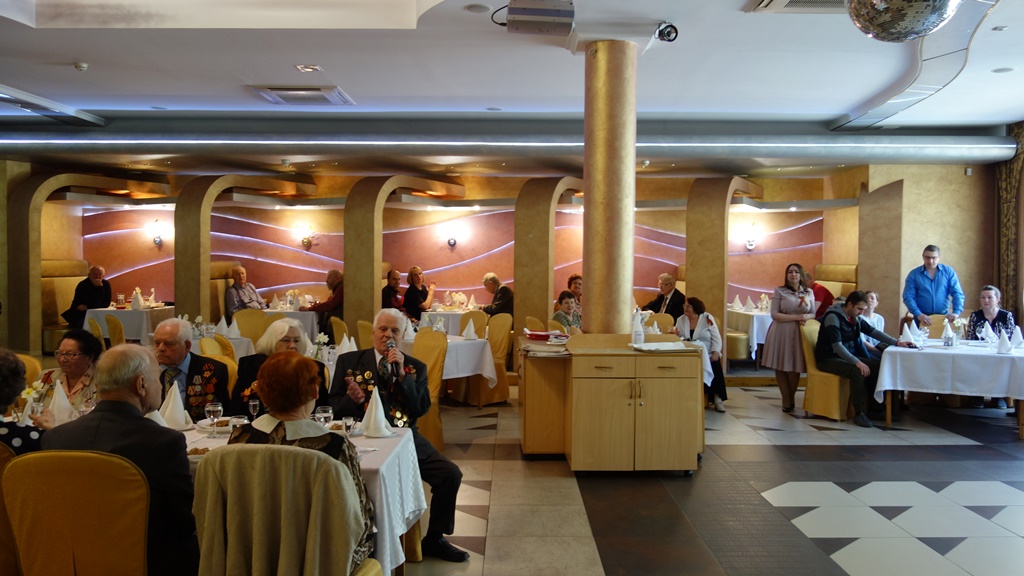 В 12.00 в ресторане состоялся праздничный концерт «Не забывай наш май», на котором присутствовали ветераны Советского района и микрорайона Ща вместе с председателем ветеранской организации Бертяковым Виталием Константиновичем и участником ВОВ Серебряковым Петром Степановичем. Кроме музыкальной программы им было предложено угощение от ресторана Дома ученых.