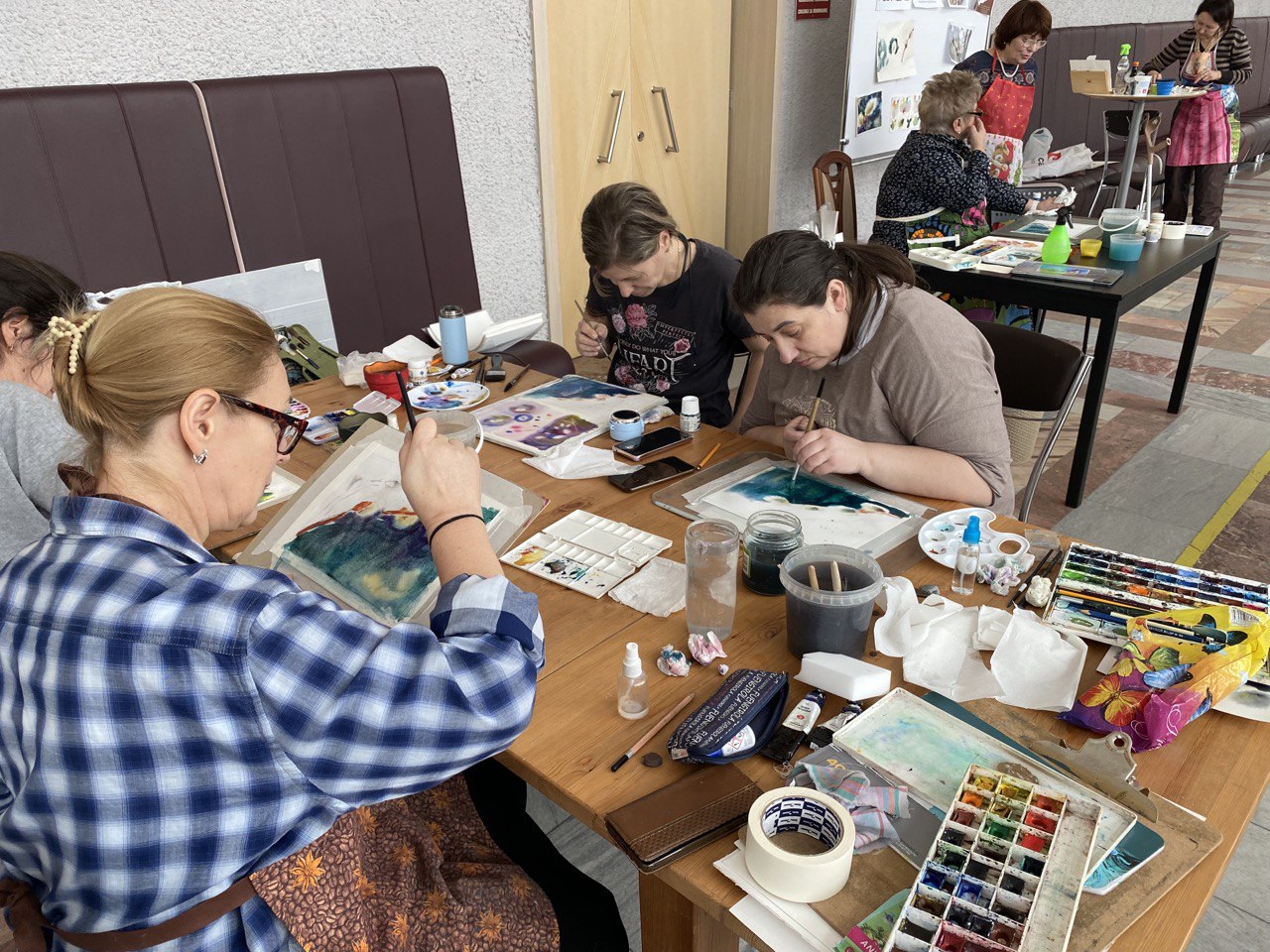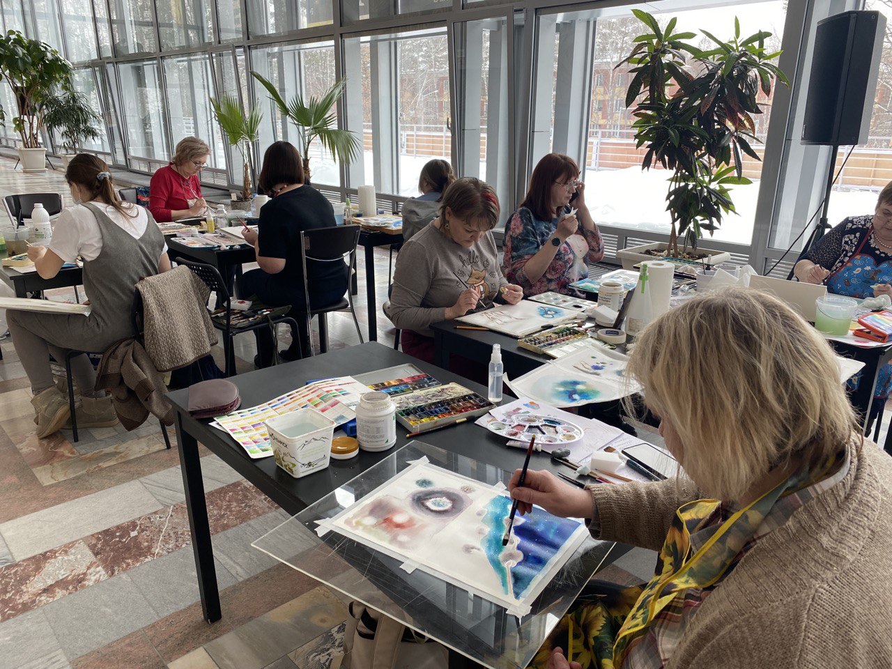 Выставка акварельных работ Ларисы Иванисенко "Диалог с акварелью", которая проходит до 12 марта в наших выставочных залах, привлекла внимание не просто любителей акварели и пышных букетов невероятной красоты, но и многих начинающих художников, ведь Лариса Николаевна не только изучила все тонкости акварельной техники живописи, но и прекрасно их умеет показать и объяснить другим. Мастер-классы проходят по темам - рисуем цветы, вербы, ягоды. Первые два мастер-класса уже прошли, и мы получили множество благодарных отзывов участников: материал даётся с самых азов, постепенно добавляются нюансы и каждый выполняет задачу своей работы на том уровне, который оказался по силам. Лариса Николаевна всегда много рисует сама, а поскольку абсолютно любая встреча с акварелью её очень вдохновляет, поэтому и своих учеников она заряжает своим восхищением этой такой нежной, отзывчивой, но немного капризной техникой живописи.