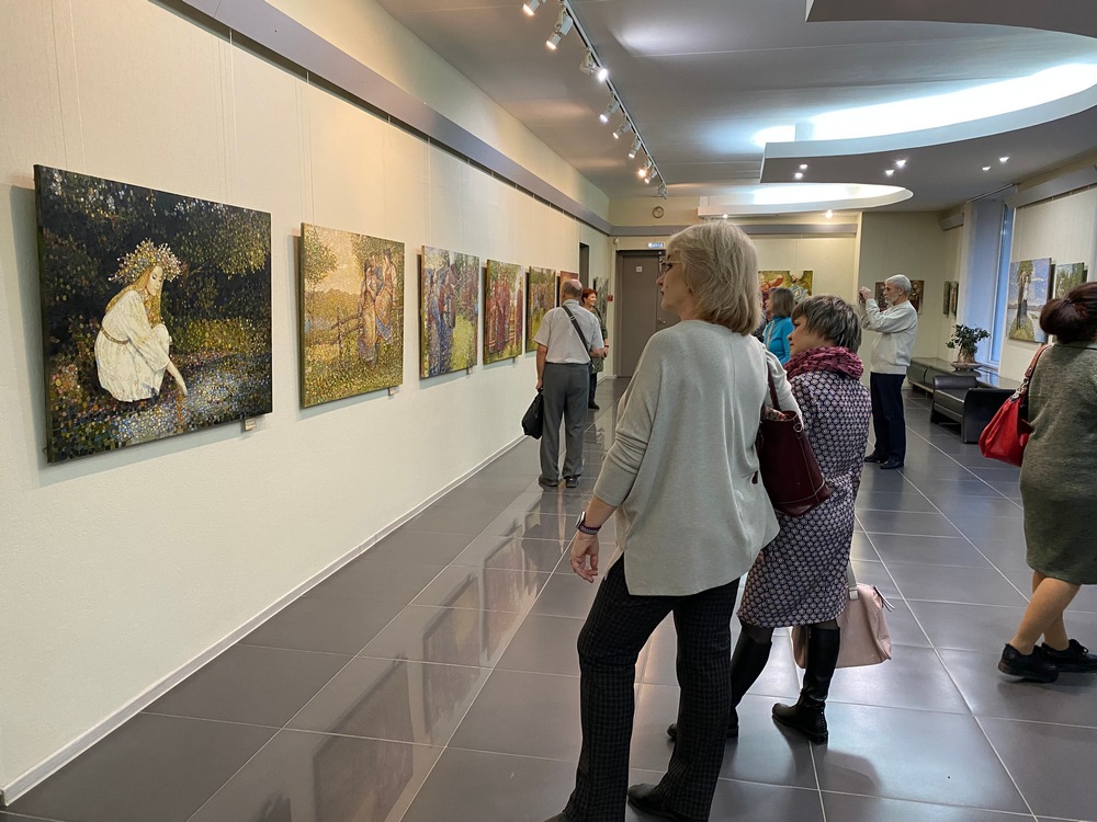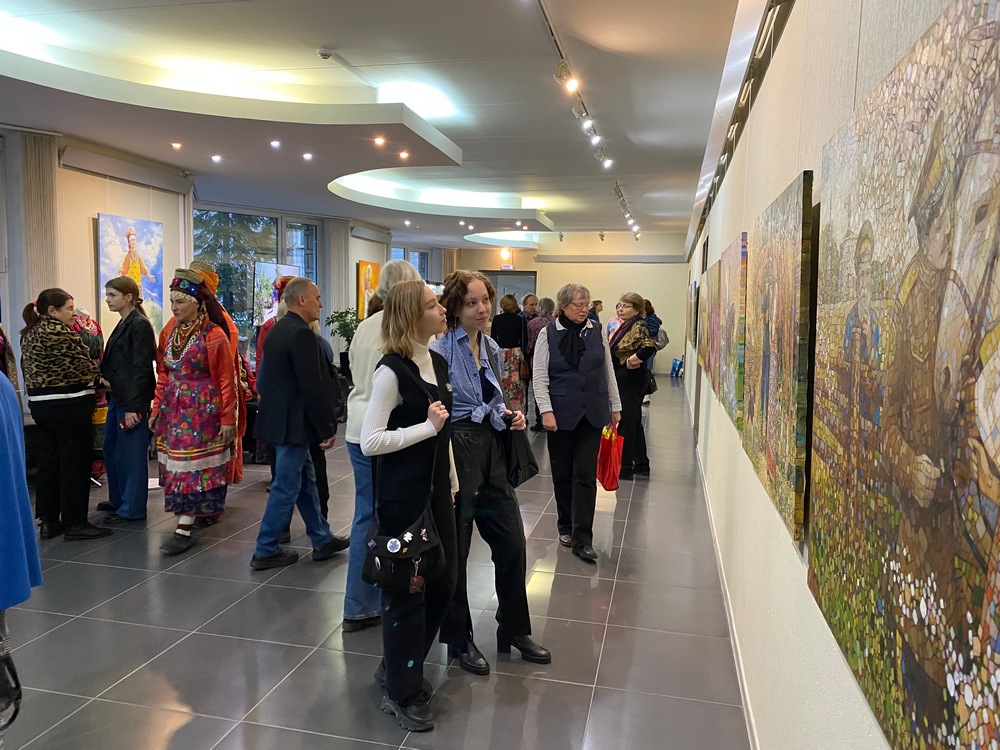 22 октября вечером состоялся вернисаж большой выставки Владимира Распутина "Эхо Даурии". На открытии выставки собрались очень многие ценители творчества этого известного новосибирского художника, а также его многочисленные друзья, с которыми он познакомился на фольклорном фестивале в Забайкалье ровно 10 лет назад - в 2014 году. На стенах выставки мы видим многочисленные сцены из жизни семейских староверов, Забайкальских казаков - это те самые первые, самые яркие впечатления, которые вылились в большую серию картин Распутина. Художник родом из Забайкалья и так творчески, с полной самоотдачей (серия "Даурия" - это более 30 масштабных картин) выразил любовь к своей малой родине.
