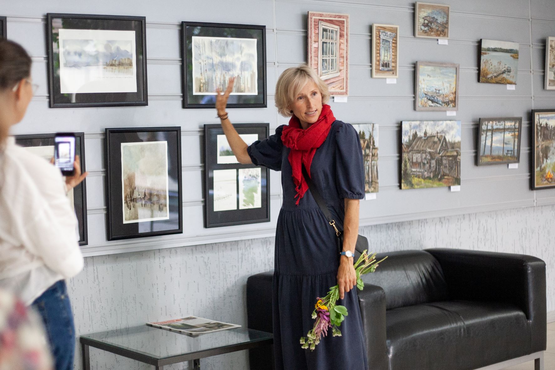 Наталья Гудченко - известный новосибирский акварелист, ученик Лиры Цукановой, педагог Студии "Перспектива" и участник выставки "Академический пленэр" провела авторскую экскурсию по выставке, которая расположилась в галерее Зимнего сада Дома ученых. Наталья впервые побывала на Академической даче им. И.Е.Репина и её восторг от погружения в это особенное историческое и культурное пространство отразился в её тонких, очень атмосферных акварелях. Только в экспозицию вошли более 30 акварелей, созданных за шесть дней пленэра. Это в основном пейзажи, передающие состояние природы. Начинали работать наши художницы (Наталья Яковлева, руководитель Студии "Перспектива" - соавтор выставки) в 5 утра, пользуясь преимуществами, предоставляемыми удачной сменой часового пояса. Работали быстро, ведь смена состояния происходит очень быстро. Работали много - творческая обстановка, конкуренция и азарт располагали.