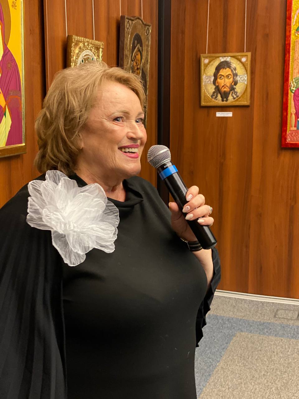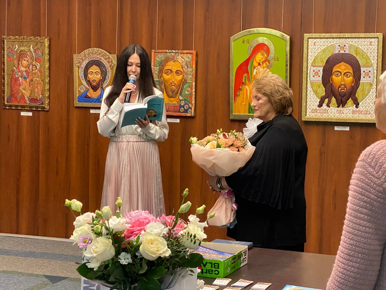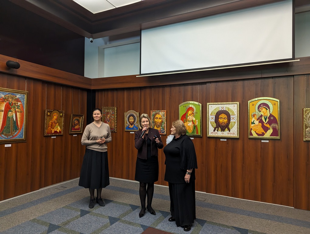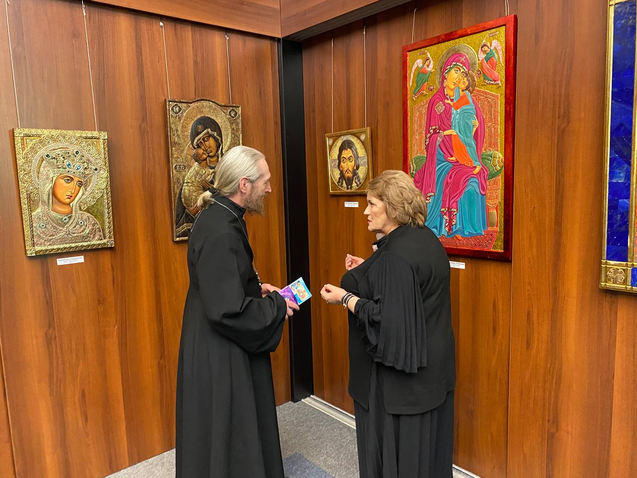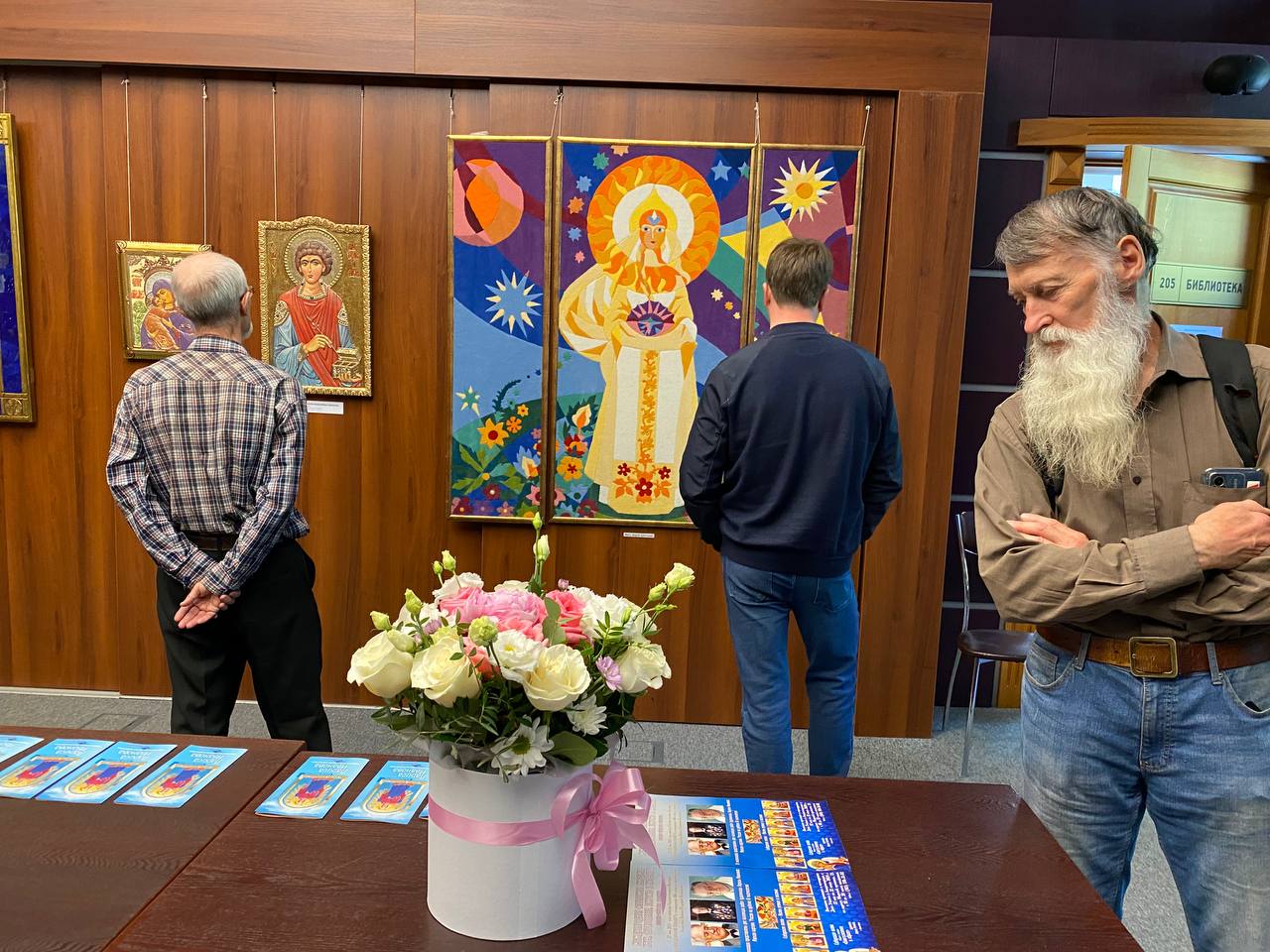 На открытии выставки звучали поздравления друзей, коллег, единомышленников, читали стихи, прозу, вспоминали. На вернисаже присутствовали гости из прихода в честь Всех святых, в земле Русской просиявших - протоиерей Андрей Баженов и директор Православной гимназии Любовь Пантелеевна Талышева, высоко оценившие мастерство представленных икон.