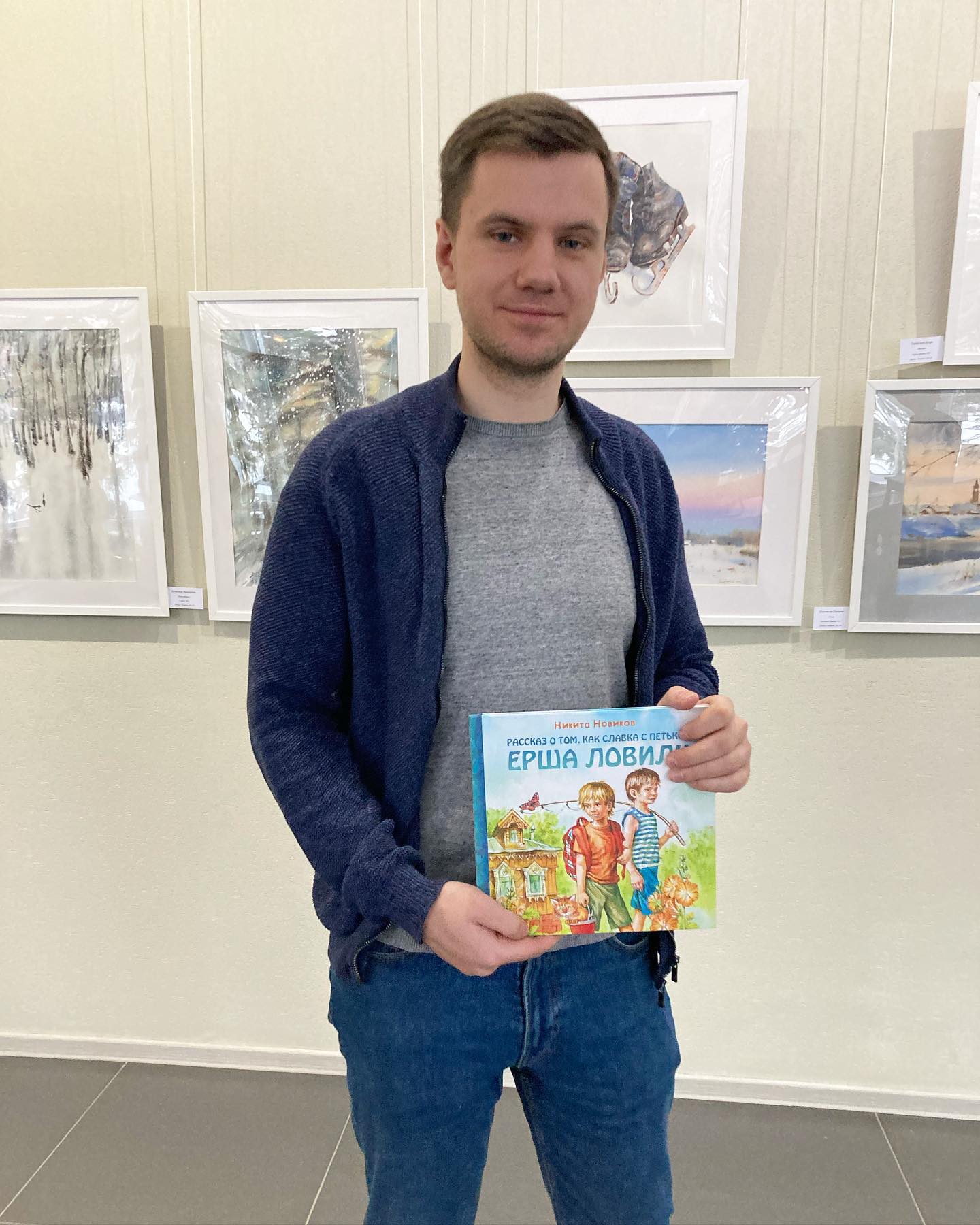 Автор детских книг Никита Новиков (г.Москва) провел презентацию своих произведений. Вместе с писателем гости выставки читали вслух, рассматривали акварели Екатерины Комраковой (оригиналы иллюстраций к представленным книгам), придумывали новые сюжеты для продолжения серии историй про Славку и Петьку… Небольшой тираж этих замечательных книг с автографом автора разлетелся по новым домам, юным читателям! Несколько экземпляров все еще можно найти и приобрести у организаторов фестиваля.