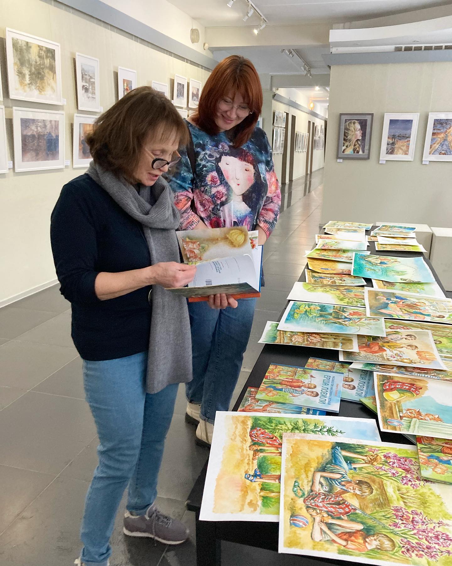 Организаторы фестиваля Наталья Попова и Станислав Лиманский провели экскурсию по экспозиции выставки «Зимняя сказка» для новых посетителей.
