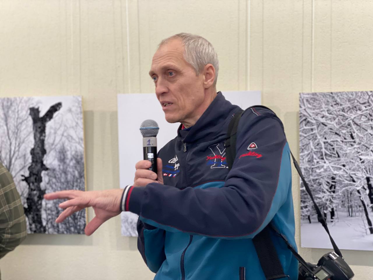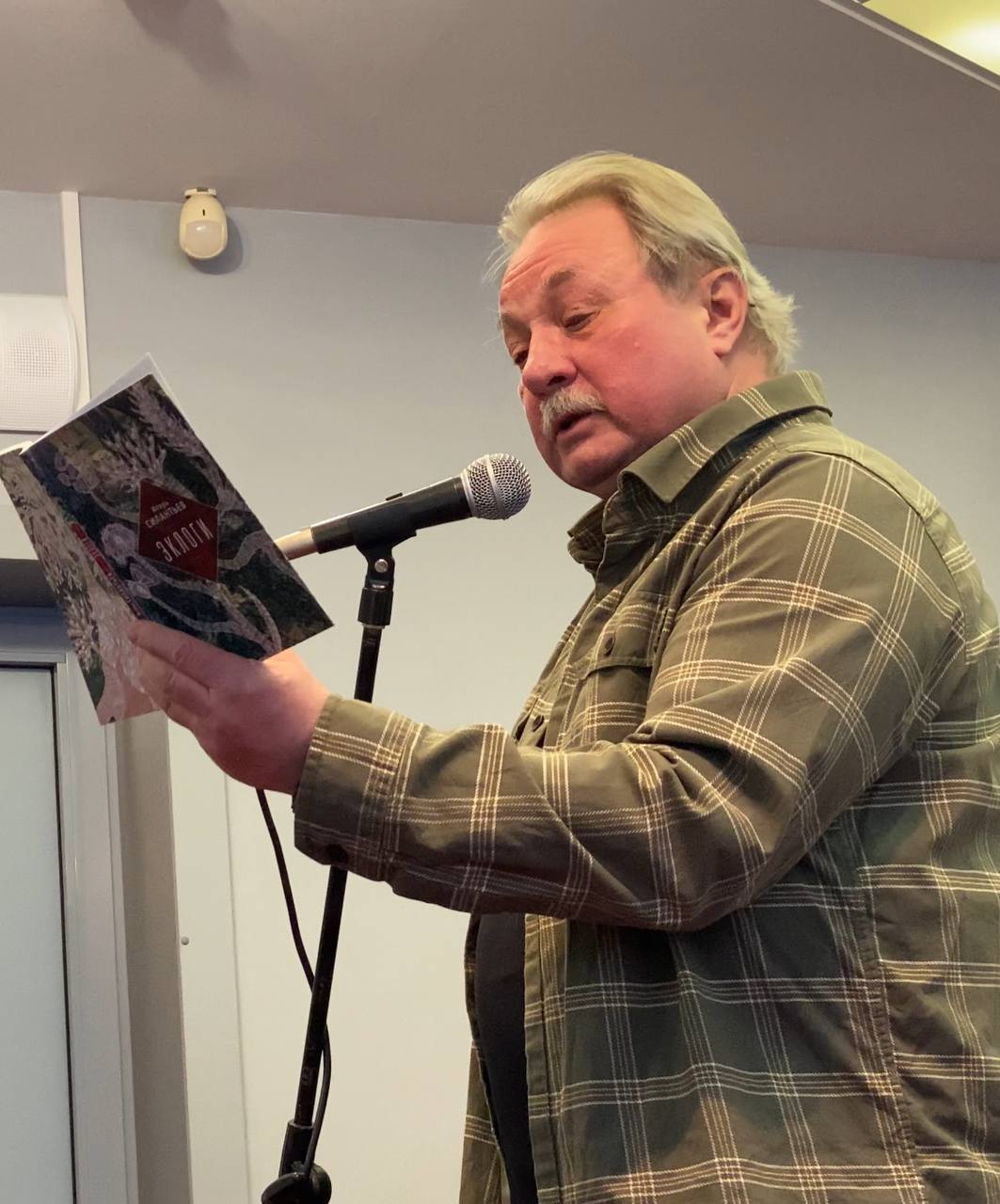 Затем Игорь Витальевич провел мастер-класс по чтению стихов, после небольшого введения о разновидностях стихотворных форм. Форма эклоги немного непривычна для читателя, она и не для чтения вслух. Но все же автор в образовательных целях прочитал вначале Бродского, а затем и свой текст из книги «Поезд». Зал был полон, как в день вернисажа, два часа пролетели на одном дыхании. Такие события нельзя пропускать, столь ценными они получаются, когда есть возможность прикоснуться к настоящей науке (в данном случае - литературоведению, филологии), вдобавок в таком непривычном тандеме, как синтез литературы и визуального искусства. Благодарим Игоря Витальевича за проведённую творческую встречу и ждём новых зрителей на площадке выставки.