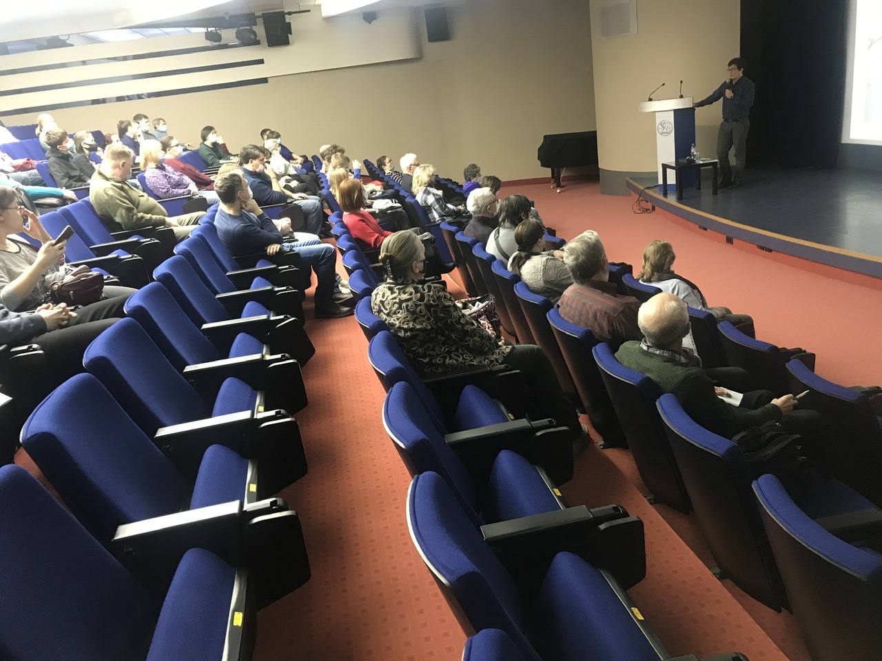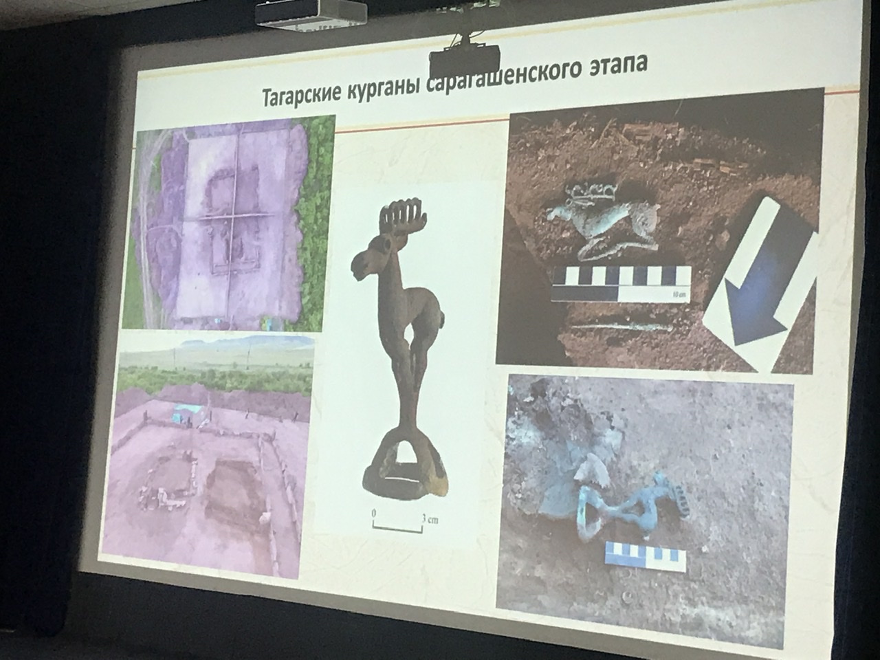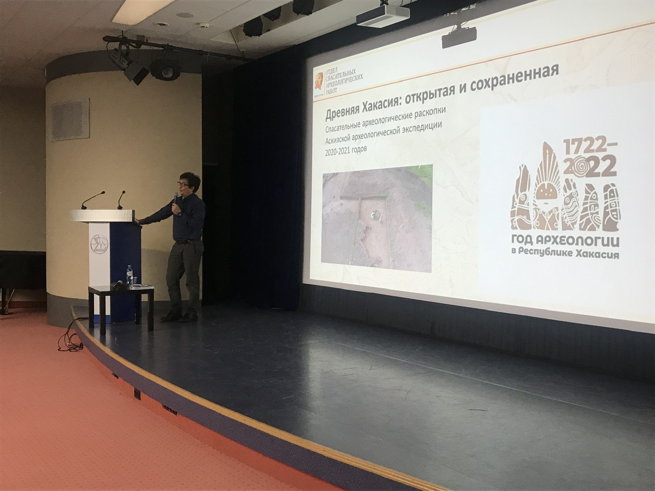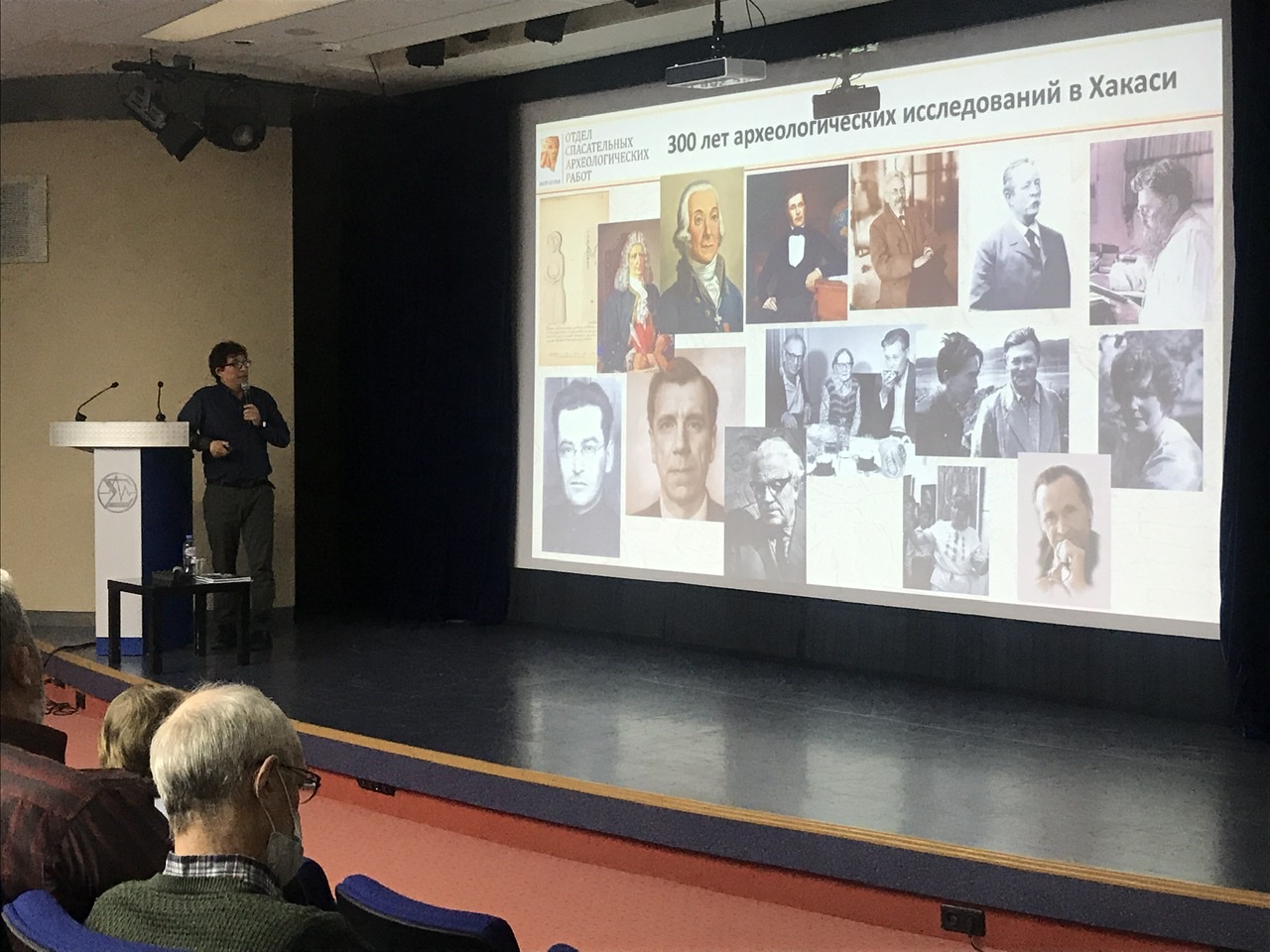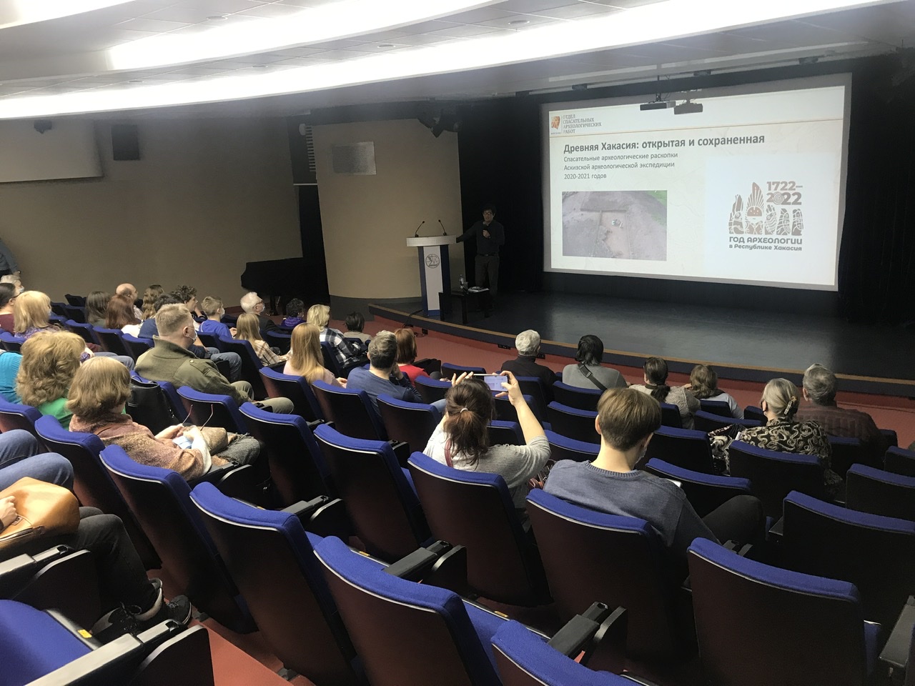 Свою лекцию археолог решил посвятить освещению всех археологических эпох Древней Хакасии, ведь в этом году исполняется 300 лет с начала археологических исследований этого региона. И все периоды от палеолита до средневековья представлены здесь очень хорошо. Богатые и плодородные земли Хакасии привлекали и скотоводов-кочевников, и земледельцев во все времена. Рассказ получился очень живой, интересный и в сопровождении насыщенного визуального материала: это карты, схемы, иллюстрации, фотографии самих раскопок и найденных артефактов не только наших дней, но и многих предшествующих экспедиций: от времен Петра 1 и до работ старшего поколения археологов ИАЭТ.