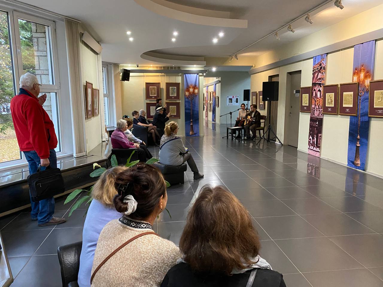 В среду 9 октября молодые таланты Антон Зоркальцев и Анастасия Давыдова исполнили несколько песен на выставке "Блюз над Парижем". Программа называлась "Музыканты в гостях у художников" - прозвучали песни, посвященные искусству и художникам. Несмотря на свой юный возраст, они уже успели получить любовь зрителей. Были исполнены исполнили хиты Элвиса Пресли «I can’t help falling in love with you» и «Love me, tender», а также песни советских бардов: Окуджавы, Галича. Вечер получился не только музыкальным, но и литературным. Настя и Антон прочитали несколько стихотворений – конечно же, о картинах.