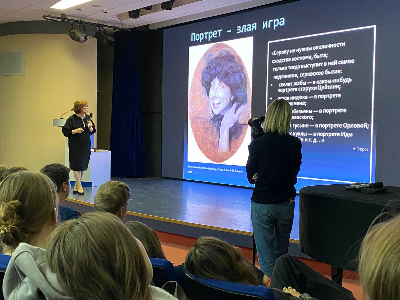 Особенно важно было провести эту лекцию в дни выставки живописи Валентина Серова, которая проходит сейчас в НГХМ и которая стала важным событием культурной жизни Новосибирска. Все присутствующие на лекции естественно или уже побывали на ней, или в ближайшее время обязательно посетят экспозицию лучшего, по мнению многих искусствоведов, портретиста России.