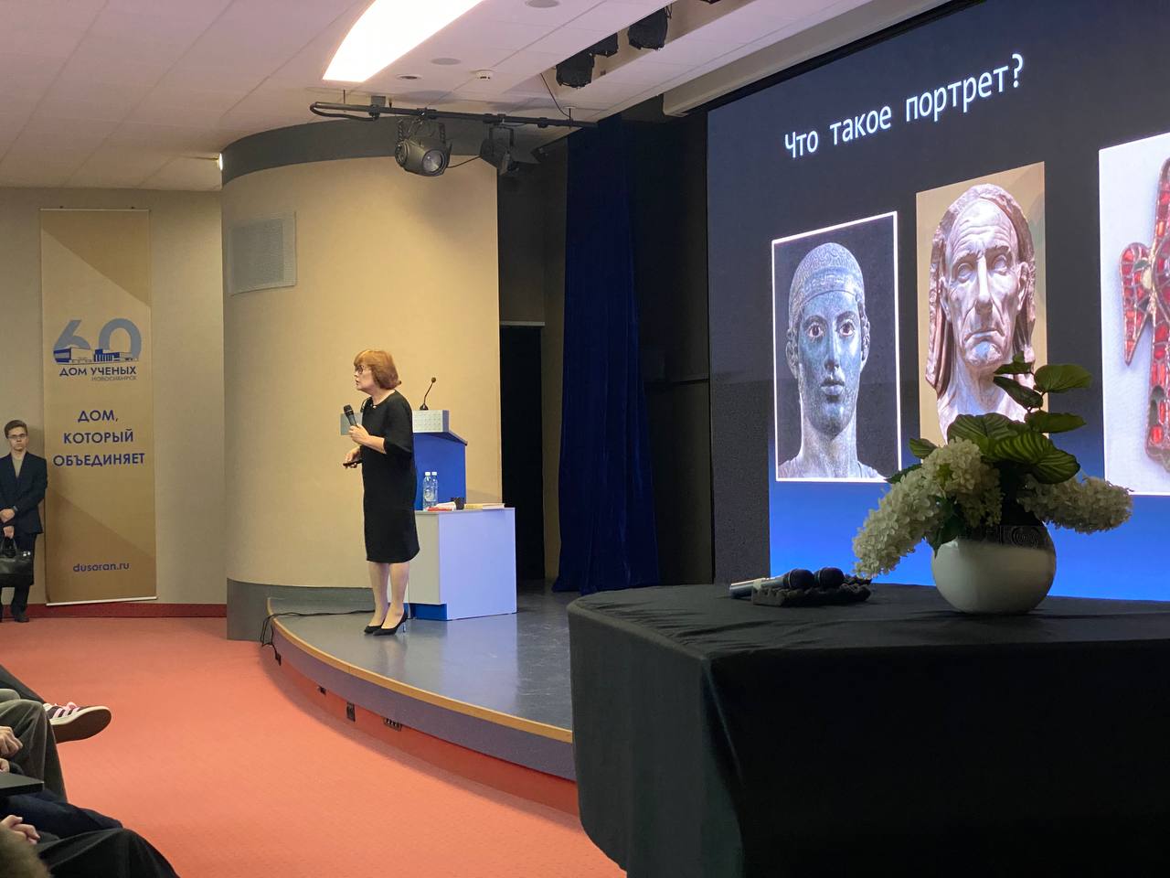 Программа кафедры истории, культуры и искусства ГИ НГУ "Метаморфозы культуры", которую НГУ И НДУ впервые проводят совместно, в четверг 18.09 представила лекцию Н.Ю.Бартош о русском портрете. К.ф.н. Наталья Юрьевна Бартош - зав.кафедрой и большой ценитель, знаток русского и мирового искусства. В этот раз нашим слушателям был предложен интересный и глубокий историко - культурологический взгляд на такое значительной явление в русском искусстве, как портрет. Помимо антологии жанра, движущего к своим вершинам русское искусство на протяжении двух веков, от первых парсун до великолепных портретов передвижников, были проанализированы и морфологические изменения, отражающие многие стороны жизни общества: истоическую ситуацию в стране, развитие образования, изменения в социальной сфере. Наталье Юрьевне удалось не только собрать более 200 человек (студентов НГУ и членов Дома ученых), но и за одино выступление изложить сложный наукоёмкий материал, заставляющий по-новому взглянуть на некоторые вопросы истории живописи, а также её роли в жизни общества.