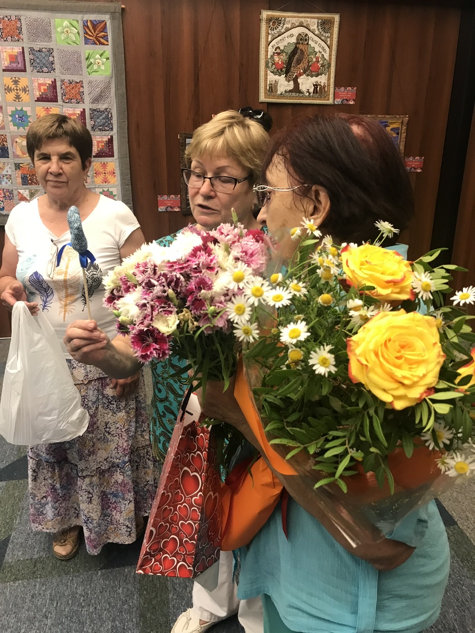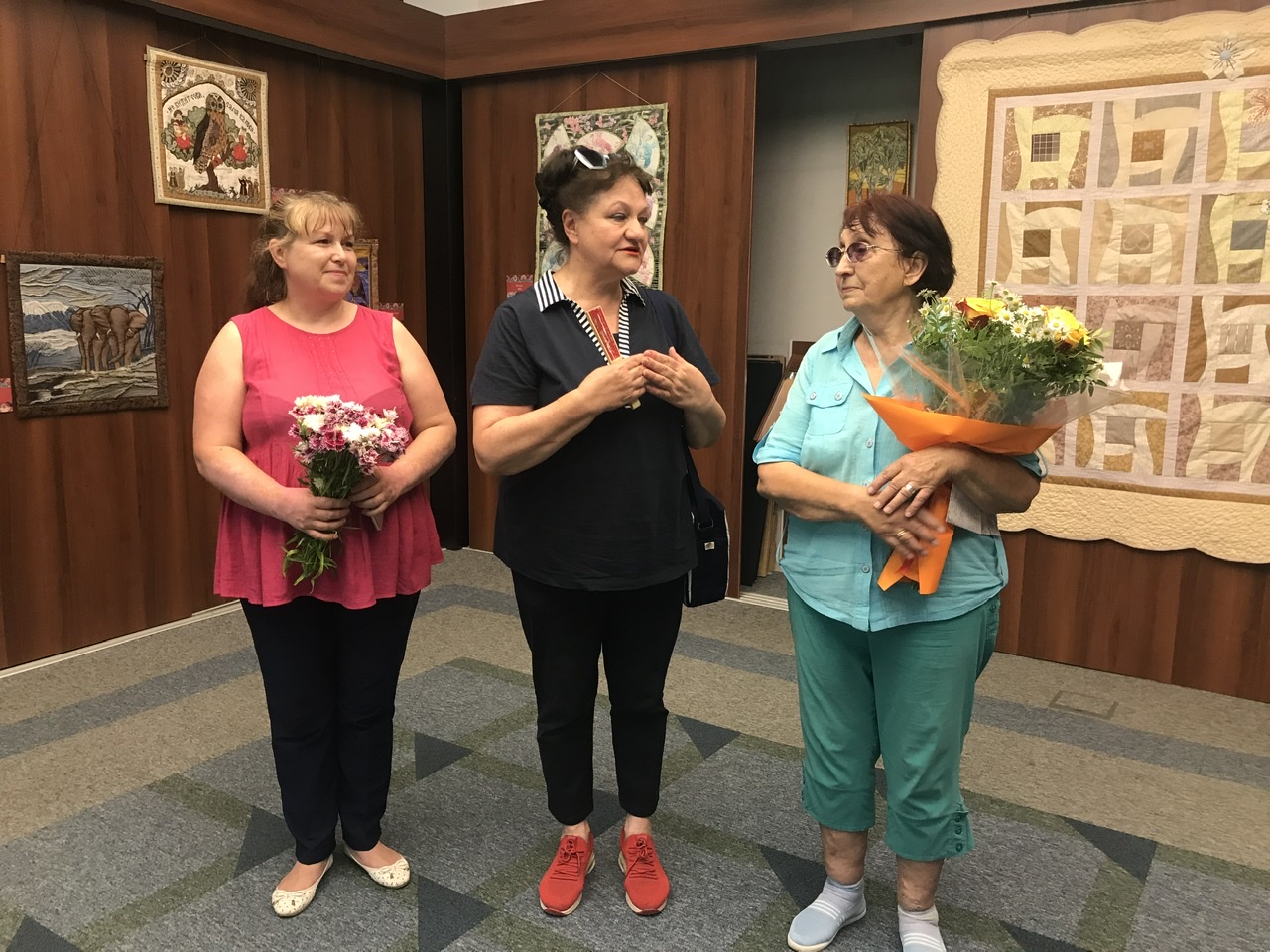 На вернисаже собрались только самые близкие юбиляра и соратники по увлечению из нашего клуба и других объединений Академгородка. Это единый очень дружный коллектив, увлеченный своим делом. И, пожалуй, благожелательное общение, открытая творческая атмосфера играют не последнюю роль в популярности лоскутного шитья в нашем городе, и не только. Это очень важно в любом возрасте, в любой профессии.