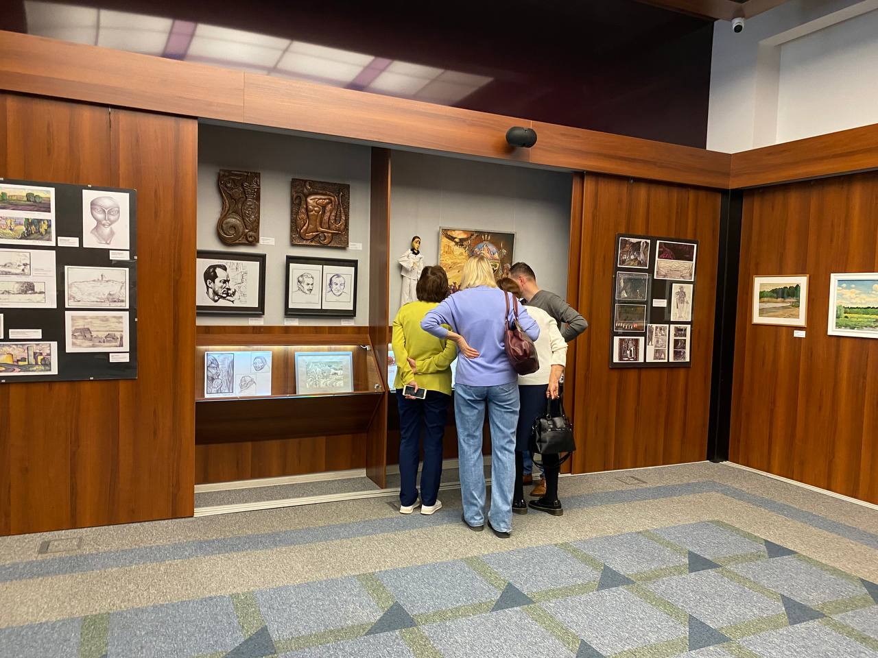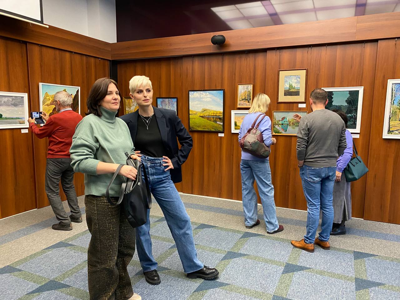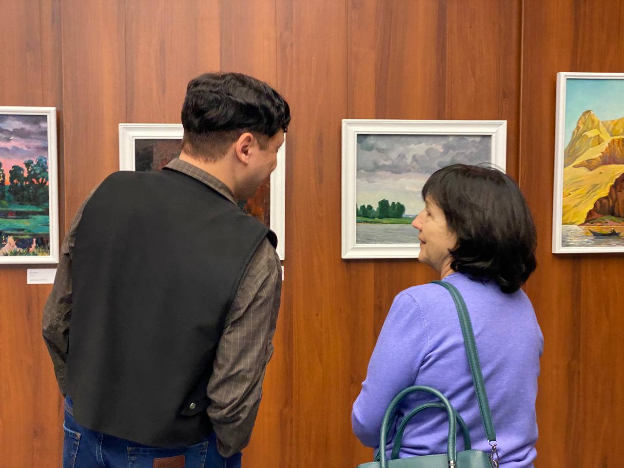 В экспозиции выставки, которую организовали дочь Ольга и сын Денис более 20 произведений живописи. Это реалистические этюды разных периодов творчества: березовые рощи, затянутые ряской водоёмы, драматические закаты, очень интересные этюды с отражениями, ночной вид, автопортрет.