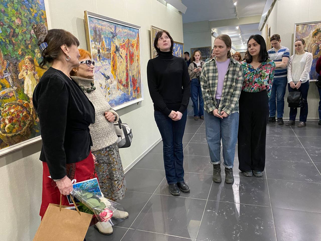 На вернисаже собрались самые близкие по духу: товарищи по ТСХР И.Ельченко, Е.Кирьянов, О.Милова, И.Савинова, ученики - выпускники НГХУ, ученики мастерской. Очень были рады видеть искусствоведа НГХМ Надежду Мельникову, она близкий друг, куратор выставок Цукановой в НГХМ и даже натурщица Лиры Васильевны. В экспозиции впервые демонстрируется портрет Надежды Владимировны с любимой собакой ("Рэм").