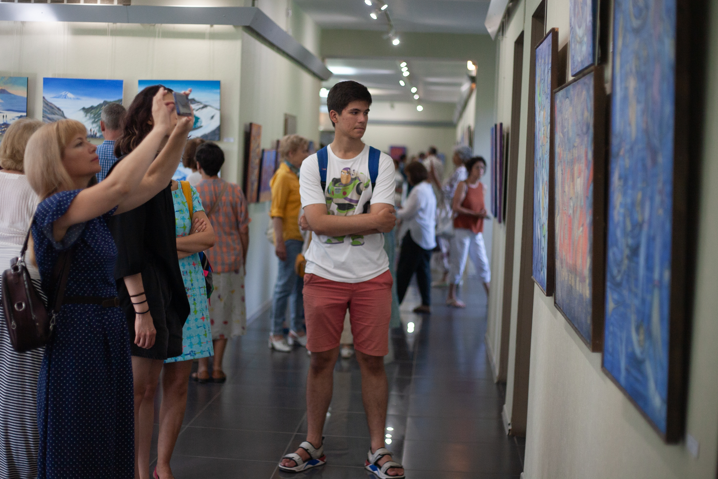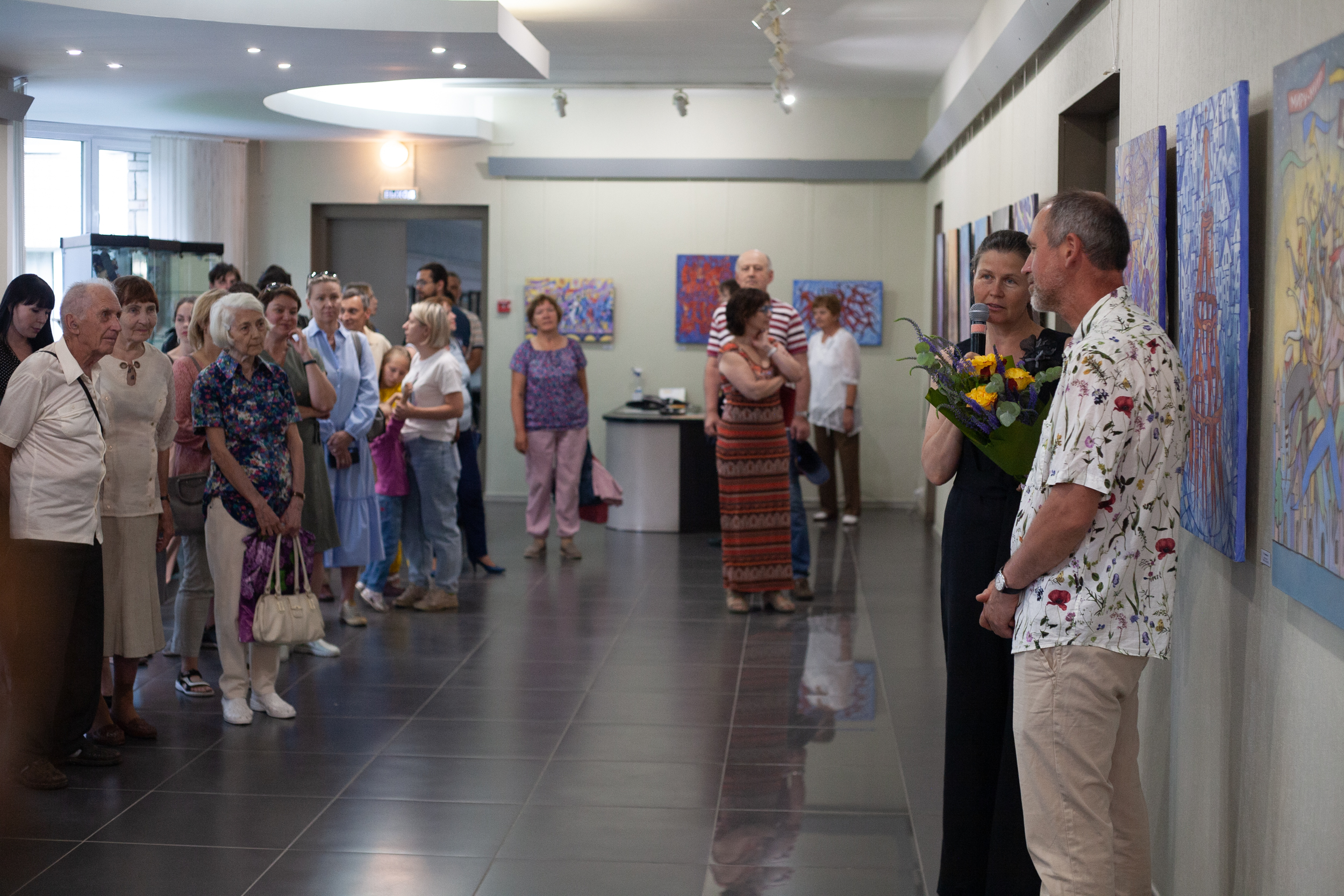 На вернисаже, как всегда у Ивана, было очень много гостей, ведь выставки всех художников Академгородка являются самыми любимыми у нашего зрителя, а тем более Ивана Юрьевича многие знают ещё и по научной деятельности. Академик РАН Сергей Алексеенко вместе с Иваном побывал в экспедиции на Курилах и для него особенно актуальными оказались их необыкновенные пейзажи. Писатель Геннадий Прашкевич почувствовал и выразил свои ощущения от живописи Ивана как попытки поместить всех нас в Ноев ковчег, спасти от надвигающегося всемирного потопа. В работах Ивана несколько вечных библейских сюжетов приобрели своё более современное новое представление, но с традиционными философскими основами. Как всякий настоящий художник, он своим творчеством отражает свое время и свои мысли о нем.