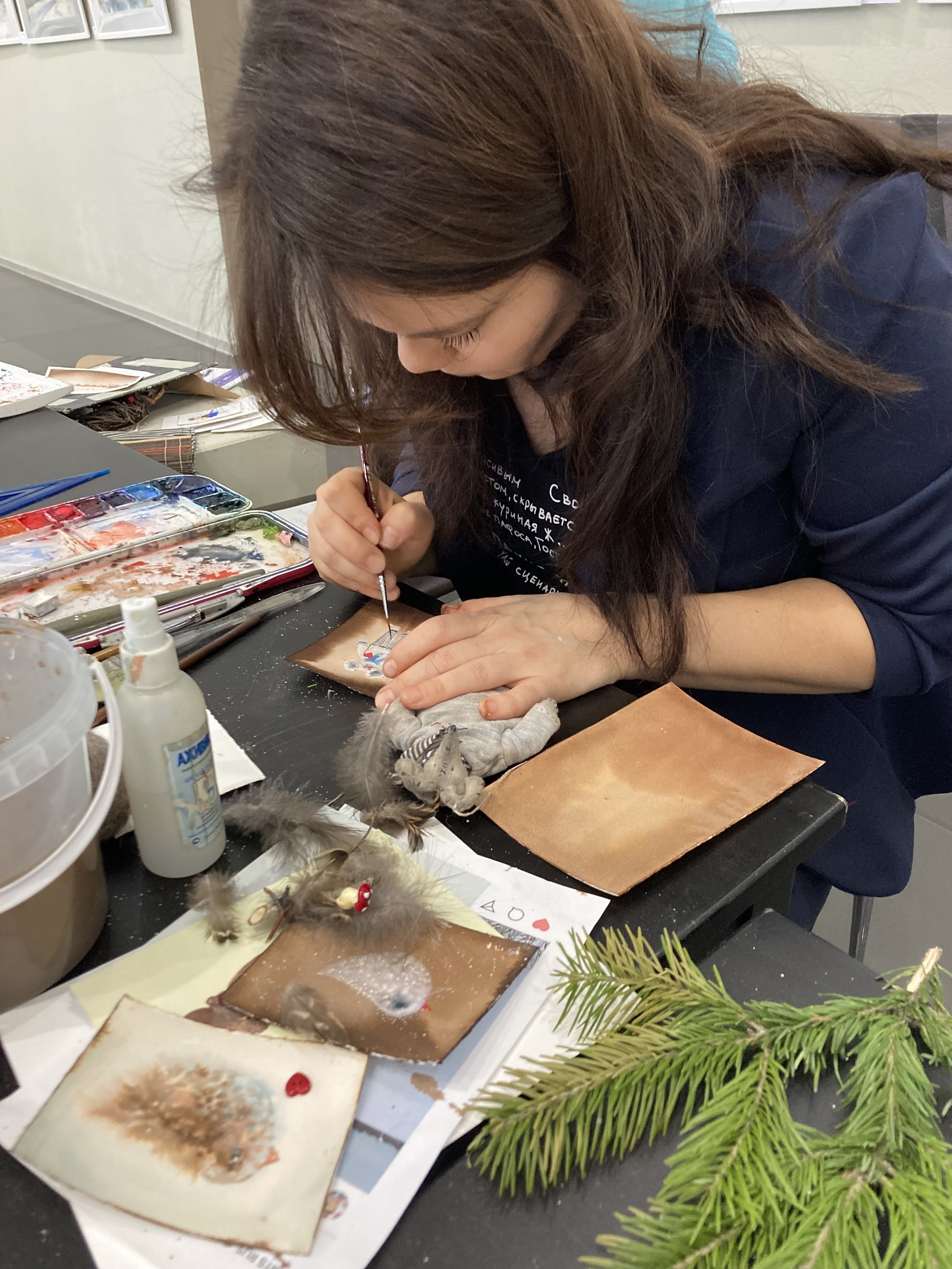 Большой интерес вызвал мастер-класс по новогодней открытке фестиваля "Зимняя сказка", основная миссия которого не просто показать прекрасные работы художников - акварелистов со всей страны, но и привить любовь и понимание необыкновенной красоты и широчайших возможностей этой техники живописи. Тем более, что нам есть чем и кем удивлять и вдохновлять: в рамках фестиваля лучшие художники Новосибирска делятся своими знаниями, умениями и секретами. Так, 19 декабря на выставке в залах Дома ученых прошел мастер-класс уникального художника из Академгородка - Натальи Гудченко. Новогодние открытки она создает уже давно и с удовольствием поделилась своим бесценным опытом. Целых три часа более 50 человек целыми семьями, классами, студиями рисовали новогодние мотивы вслед за Мастером. Открытки создавали акварельные, но в винтажном оформлении, с аранжировкой всяческим праздничным декором.