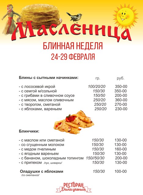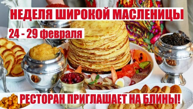 С 24 по 29 февраля приглашаем на блины в наш ресторан.
