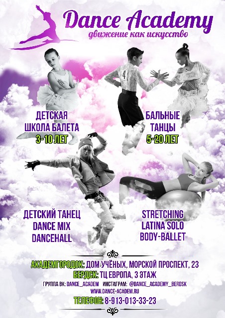 Dance Academy –это танцевальная студия для детей и взрослых с различными танцевальными направлениями для всех возрастов и любого уровня подготовки.