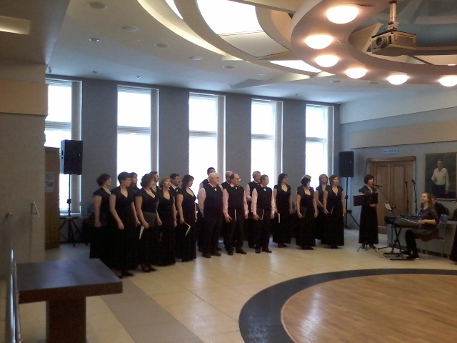 В фойе Малого зала состоялся концерт, где выступили участники клубов Дома ученых (аспиранты, кандидаты и доктора наук).