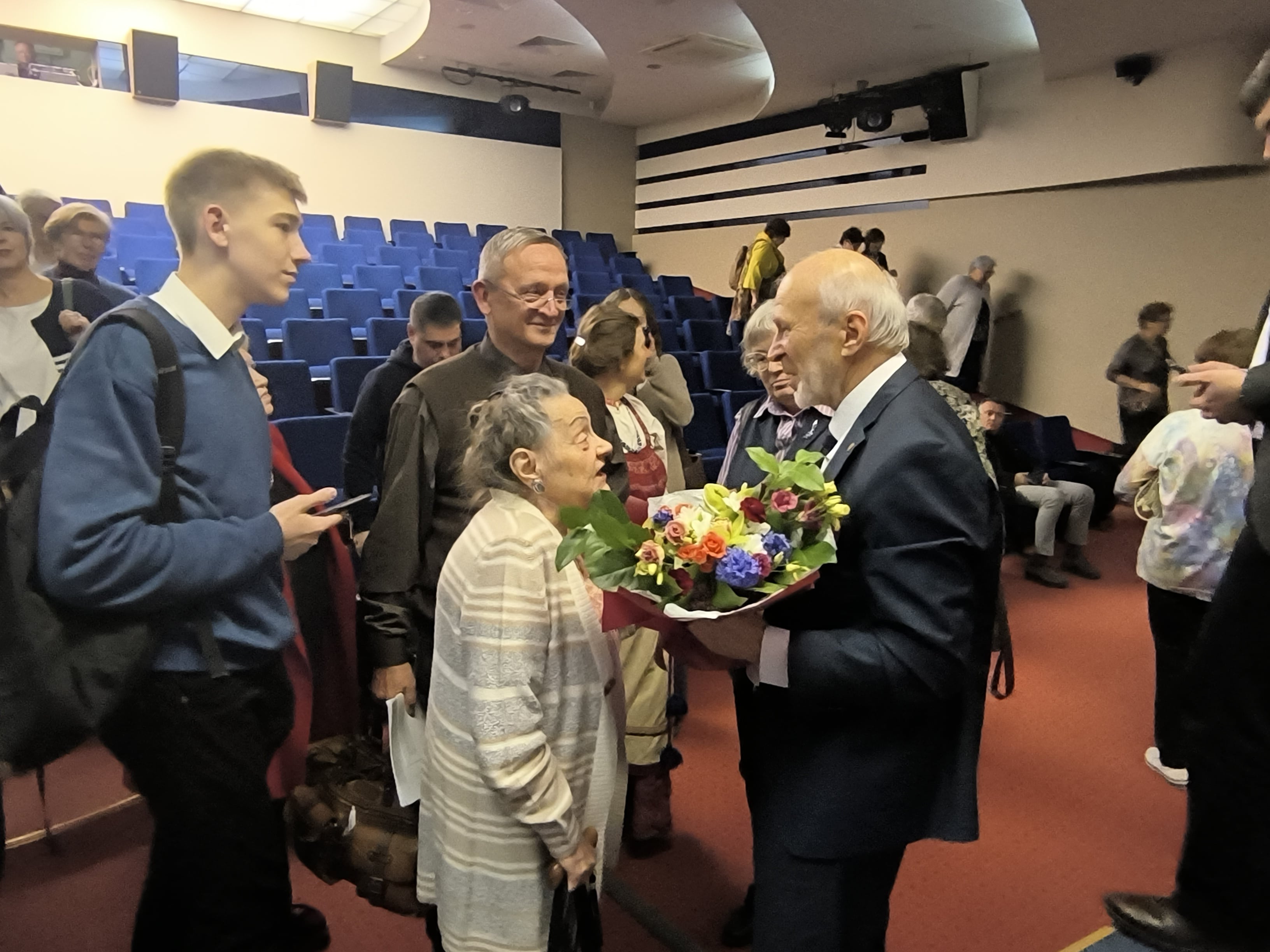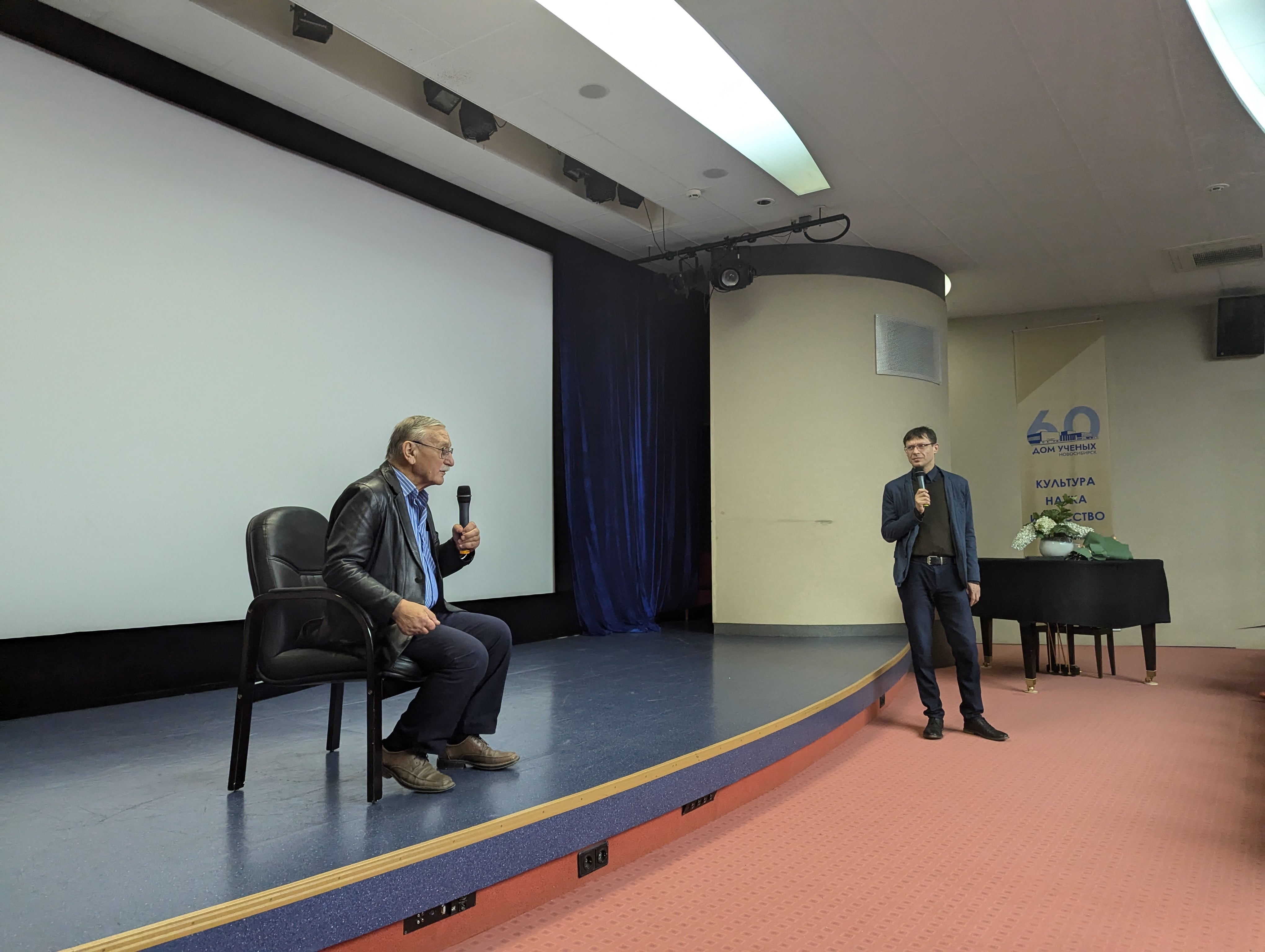 Центральным событием дня стала встреча с интересным человеком. В разные годы ее участниками становились общественные и культурные деятели, космонавты, спортсмены. В этот раз, в год 300-летия Российской академии наук, героем встречи стал человек не только интересный, но и очень разносторонний, широко известный в Академгородке и за его пределами – академик РАН Сергей Алексеенко. Сергей Владимирович – доктор физико-математических наук, профессор, лауреат международной премии «Глобальная энергия», председатель Президиума Совета Новосибирского Дома ученых. Помимо научной деятельности, Сергей Владимирович увлекается фотографией; его работы экспонировались в выставочных залах ДУ. Беседу с главным героем провела директор Дома ученых Галина Лозовая. Формат интервью стал теплой беседой с возможностью узнать много нового даже тем, кто знаком с Сергеем Владимировичем и его деятельностью. Особый интерес вызвала тема путешествий: Сергей Владимирович рассказал о поездках и экспедициях на плато Путорана, в пустыню Гоби, на Тибет и в другие удивительные места.