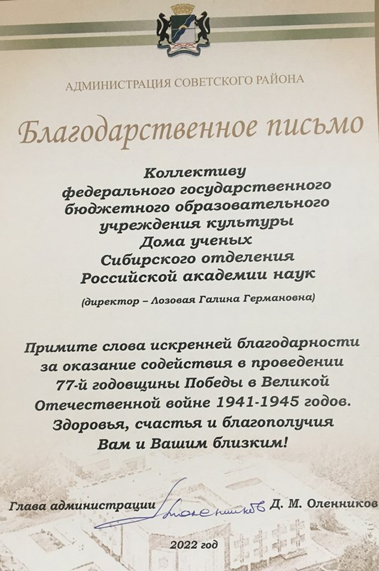 В День Победы, один из самых значимых и почитаемых в нашей стране праздников, гости Дома ученых посетили мероприятия с участием творческих коллективов Академгородка.