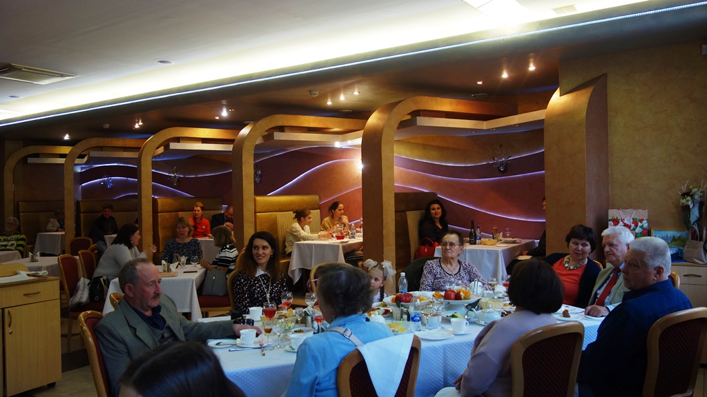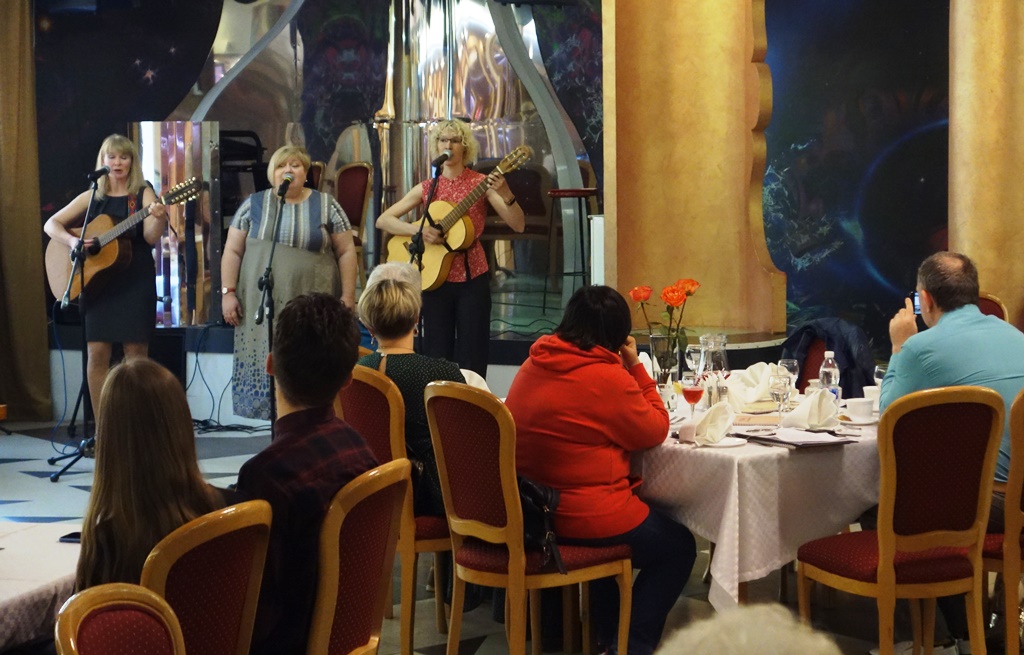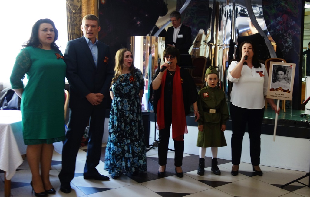 Днем в ресторане состоялась праздничная программа «Победная весна». С музыкальными номерами выступили ученики и педагоги студий «Ваше Соло» и «Фабрика талантов», автор-исполнитель песен Елена Борейко, лауреаты Всероссийских конкурсов Федор и Ульяна Выграненко. Почетными гостями стали члены Совета ветеранов Советского района и председатель Совета, ветеран боевых действий в Афганистане, капитан Валерий Клебанюк, члены ветеранской организации «Правые Чёмы». С поздравительным словом выступила руководитель народного музея боевой славы воинов-сибиряков Нина Михинкевич.