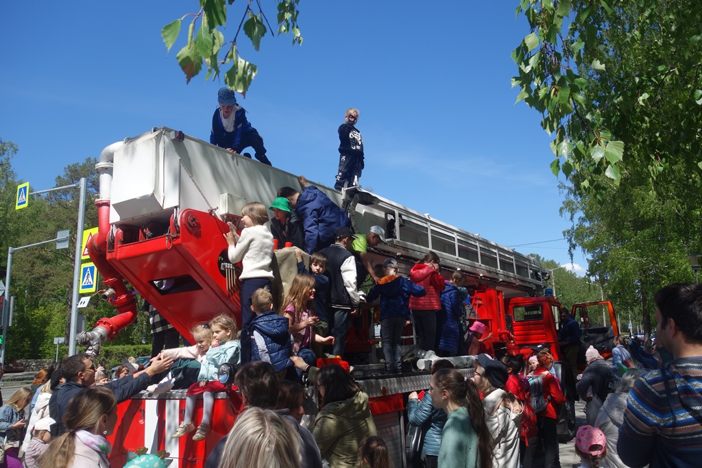 На уличной площадке перед Домом ученых состоялся полюбившийся ребятишкам зрелищный мастер-класс по пожаротушению. Также ребята смогли сделать аквагрим, поучаствовать в играх и конкурсах.