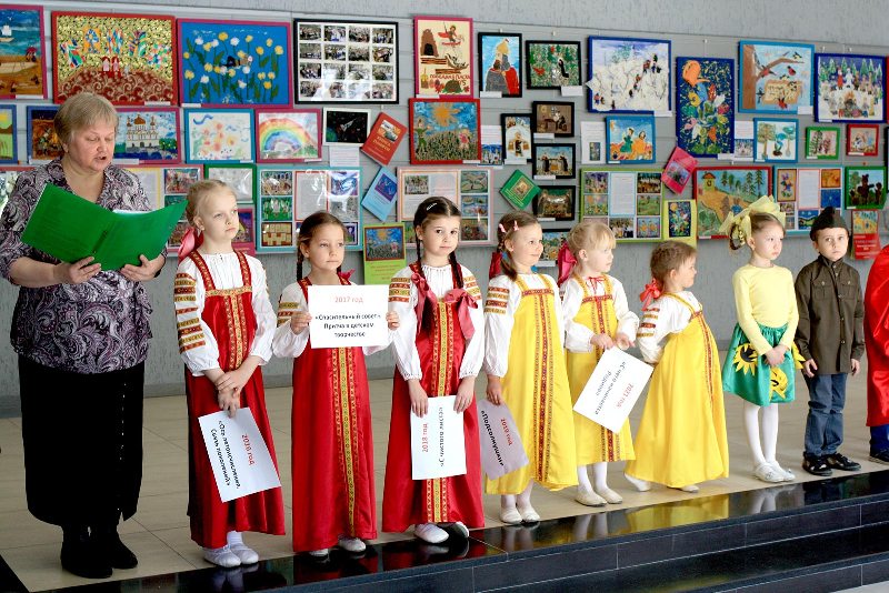 Целый учебный год на занятиях готовится общий тематический Проект. Дети приходят на серьезные выставки, проводятся развивающие занятия изо, всегда с обсуждением заранее поставленных вопросов. За десяток лет это были глубоко проработанные с ребятами «Времена года», «Сказка ложь, да в ней намёк!», «Ты в ответе за тех, кого приручил», «Светильник Земли Русской» к 700-летию Преподобного Сергия Радонежского, «Нет в России семьи такой, где б не памятен был свой герой» к 70-летию Победы СССР в Великой отечественной войне, «Ось летоисчисления. Связь поколений», ««Спасительный совет». Притча в детском творчестве» и другие. Ребята придумывают сюжет, с воспитателями делают свою личную или коллективную работу. Очень часто работы детей сопровождаются рассказами об их семьях, сочиняются стихи. Сами работы всегда очень интересные, яркие, наглядные, заставляют задуматься не только детей, но и взрослых гостей выставочных залов.