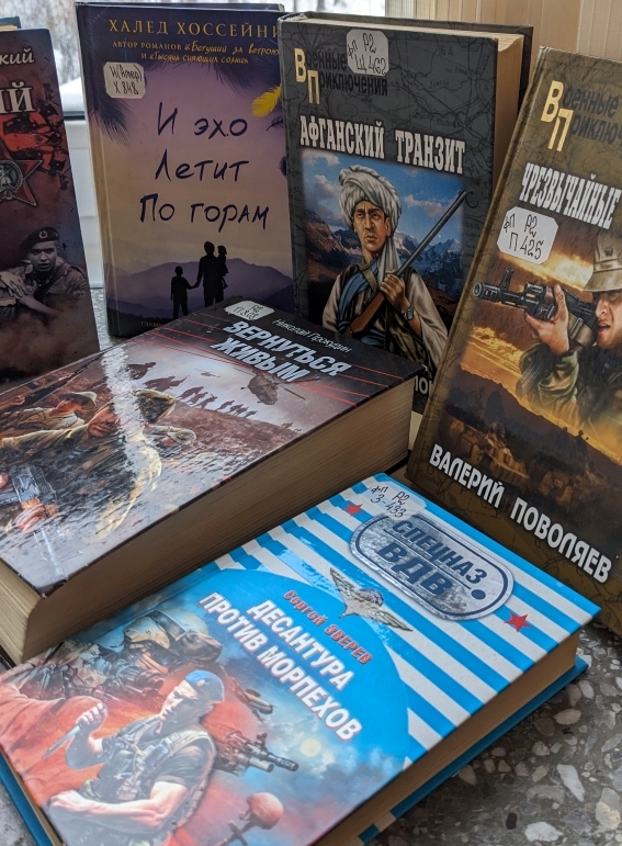 На книжной выставке представлена художественная литература, отражающая боевое прошлое тех, кто до конца выполнил свой интернациональный долг. Это поэтический сборник «Из пламени Афганистана», романы Андрея Таманцева «Солдаты удачи», Александра Тамоникова «Горный блокпост» и «Истребители пиратов», Александра Проханова «Шестьсот лет после битвы», Анатолия Полянского «Афганский излом», Александра Щелокова «Афганский транзит». Халда Хоссейни «И эхо летит по горам», Николая Прокудина «Вернуться живым», Валерия Поволяева «Чрезвычайные обстоятельства». Ждем вас на нашей выставке.