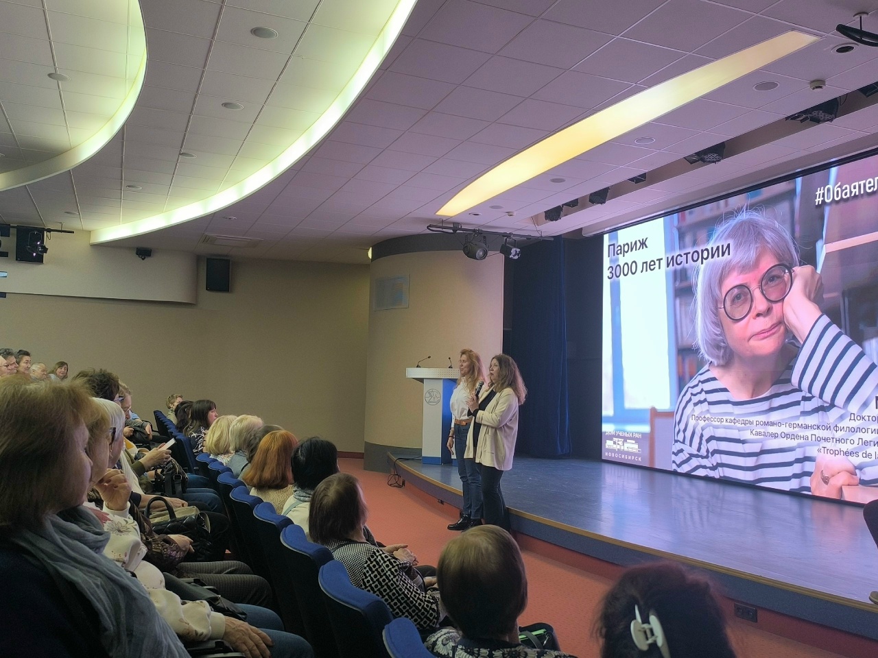18 марта в рамках проекта #Обаятельная_наука_в_ДУ в Доме учёных выступила доктор филологических наук, профессор Новосибирского государственного университета, кавалер Ордена Почётного Легиона (высшая государственная награда Франции) Мишель Дебренн с лекцией «Париж – 3000 лет истории»