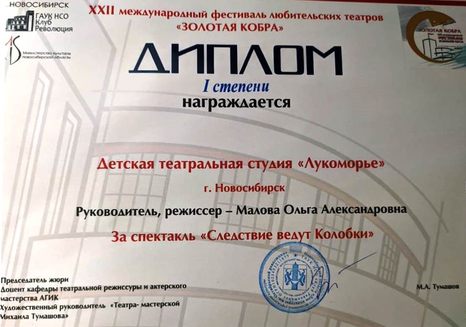 И уже 25 марта юные артисты вместе с педагогом выехали в Новосибирск, где повторно выступили перед авторитетным жюри, сыграв спектакль "Следствие ведут Колобки".