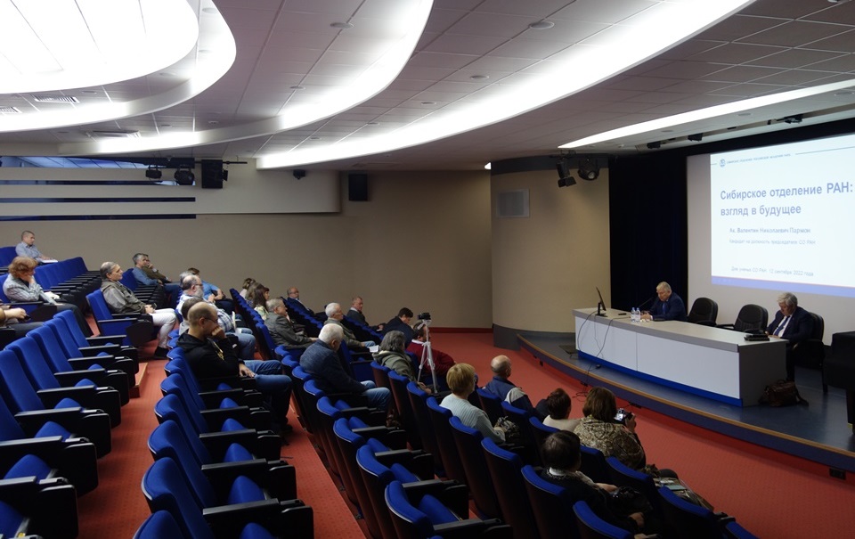 12 сентября 2022 г. в Малом зале Дома ученых состоялась встреча академика Валентина Пармона – кандидата на должность председателя Сибирского отделения РАН – с научной общественностью и жителями Новосибирского Академгородка.